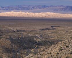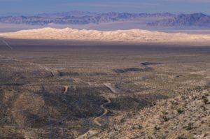 The Kelso Dunes are also notable for the phenomenon known as singing sand, or “booming dunes”. Enthusiasts sometimes climb to the top of the dunes and slide down slowly, generating a low-frequency rumble that can be both felt and heard. This effect has also been noted at the Eureka Dunes in California, Sand Mountain in Nevada, and the Booming Dunes in the Namib Desert of Africa. The booming is much more pronounced when the dunes are extremely dry.  Bob and I spent some time out there last year, but we will have to return in the summer or Fall to experience the rumbles and the booms.