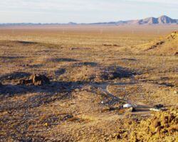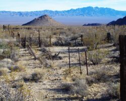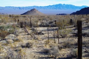 As if the sand and desolation of the Mojave Road wasn’t enough, we thought we would take a “short-cut up and over the Providence Mountains.  I think the gas station experience scarred us sufficiently to want to avoid another interaction with highways and the like that travel them.  Just a few miles down Essex Road, we picked up a straight dirt track leading due West.  It followed the phone lines as many roads do and then, as we picked up elevation, it picked up the power lines too.  Our ascent was fairly gradual, although, increasingly in our view was a treacherous looking grade up the side of a rock.  We were definitely headed in that direction, but we had been out in the open on the alluvial fan and the mountain didn’t seem to be that high, and surely there was a more reasonable pass or a wash through which to gain the other side.
