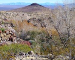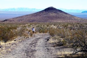 We sped by the Depot this time, zeroing our trip odometer at the junction of Kelso and Cima roads to help us find our Powerline Road at about the 11 mile mark, which would take us out to the Mojave Road.  We looked but obviously sped past it in our zeal to finally begin our trek, the morning session taking much longer and much more out of us than expected.  Soon, we found ourselves at a familiar intersection of Aiken Mine Road, although we didn’t realize it at the time.  It wasn’t until we passed across the Mojave Road, again not realizing it and came to a parking area at the base of a massive red cinder butte.