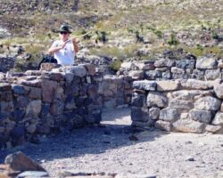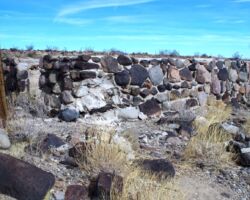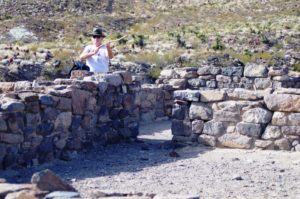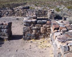 The stone remains of the Fort and corrals were obvious as was another large wooden post and wire corral.  According to a lone Jeeper that crawled all the way to the gate, the corral on the outer edge was the remains of a more recent turkey farm.  It is hard to believe being so far from a decent road or a potential market, but I guess it is possible.  Bob found some petroglyph looking markings on some rocks strewn about the turkey farm.  I would hope that if they were real, the NPS would have taken them away from their new use as a fire ring.  Bob also found the remains of a very cool cabin tucked up on a ledge above the creek, but below the ground level so almost invisible from the road.  All that was left was a beautiful stone chimney; no walls or roof remnants, and a simply stunning location.  The Fort was a great find.
