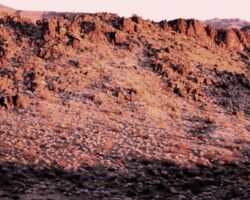 The Dome rises 1,500 feet (460 m) above the volcanic plain, 2,132 to 4,950 feet (650 to 1,509 m) high, and covers 70-square-miles (180 km2). Cima Dome is an extremely symmetric dome of this granitic formation type, and one of the most visible ones by being in open desert plains, if you know what not to look for that is.