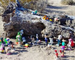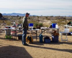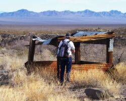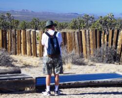That was the only bit of climbing I needed to do and it was worth the effort to get on top and see out to the Southern expanse for the first time, to look down on the camp and to see my 3 tiny friends gathered by the fire.  I was happy to be here.  Back at camp, we proposed the day’s events, packed up Bob’s Tacoma, and headed out Essex Road to Highway 40 back West to Kelbaker Road and into Kelso.  We stopped at the beautiful Train Depot Visitor Center to gather some intel, look at the displays, and use the facilities.
