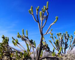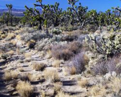 It is covered by the largest and densest Joshua Tree forest on earth.  The dome is subtle and discreet; a broad sloping upland dome, the erosional remnant of granite plutons that formed deep under the Earth’s surface 180 – 80 million years ago when the Farallon Plate was being subducted beneath the North American Plate.