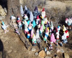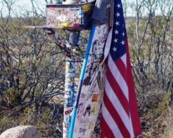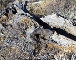 A couple guys passed me on the way up, and then the boys passed me on the way down, although I am certain I was able to conceal my location and spring upon them as they unknowingly passed beyond me.  Exhausted from our trek, we consumed additional liquids.  Although the temperature was dropping in the late afternoon, I rode in the back of Bob’s rig back to the intersection, before heading back to the pavement.  Bob needed to gas up, so we headed NW out to Highway 15.  What a massive hit of undesired reality.