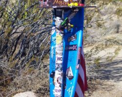 Much of the road was to be pavement or decent dirt so I didn’t figure we needed 2 rigs.  I needed gas, so we headed out Essex to 40 and East to Fenner.  The gas station has several large shallow concrete pools with many Koi fish and fountains and vegetation.  It is quite the place.  We didn’t linger.  We jumped on Route 66 which was cool, even though this wasn’t the stretch with the cool towns of Bagdad or Amboy, even though apparently not much of them remain either.  In any event, we were headed to Goffs, which, while not much of a town, had a very large and interesting desert, West, rail museum that is worth checking out. But we didn’t.
