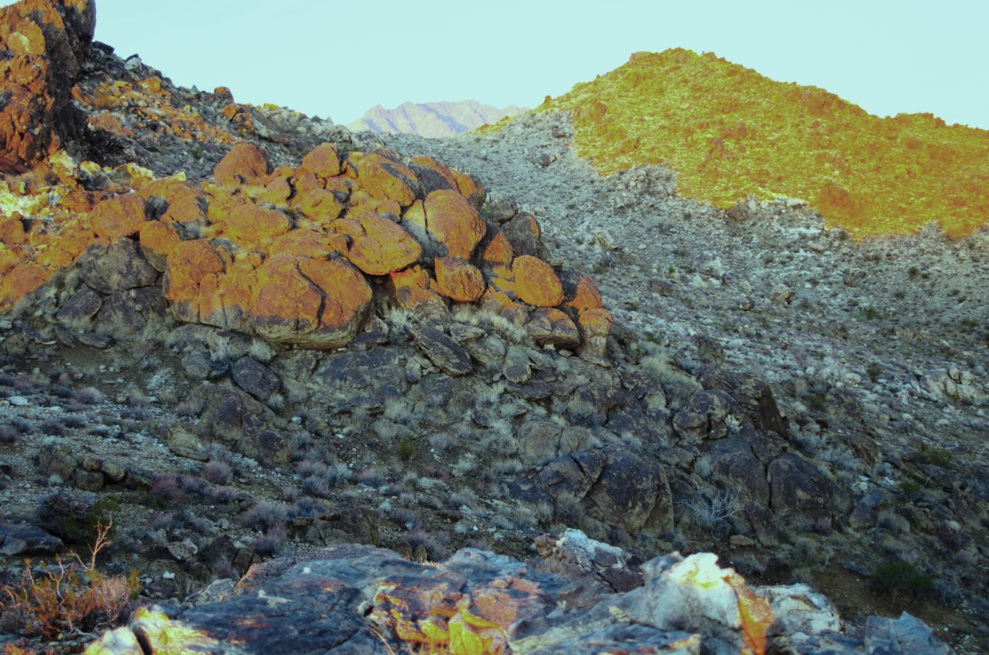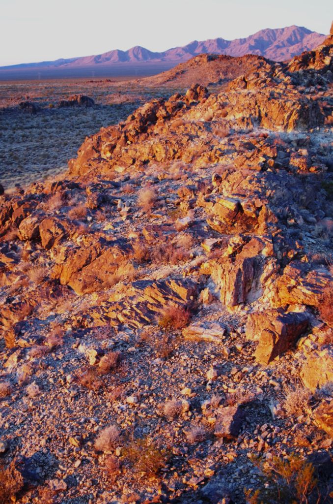 I scrambled up the end of the rocks that formed the ridge at the back of our camp, separating us from the valley behind us.  With each little rise, I seemed to rise hundreds of feet above the valley floor as its apron of desert sand and pebbles fell away to the South and East.  In the pre-sunrise orange glow, I felt everything; insignificant and a conqueror, meaningless and important, alone and connected to everything, empty and full, melancholy and joyous.  I wanted to take a picture of every pebble, every plant, and every relief in every direction.