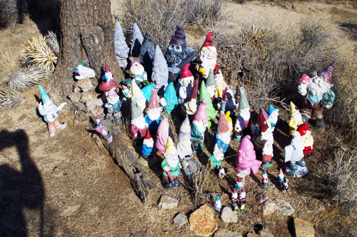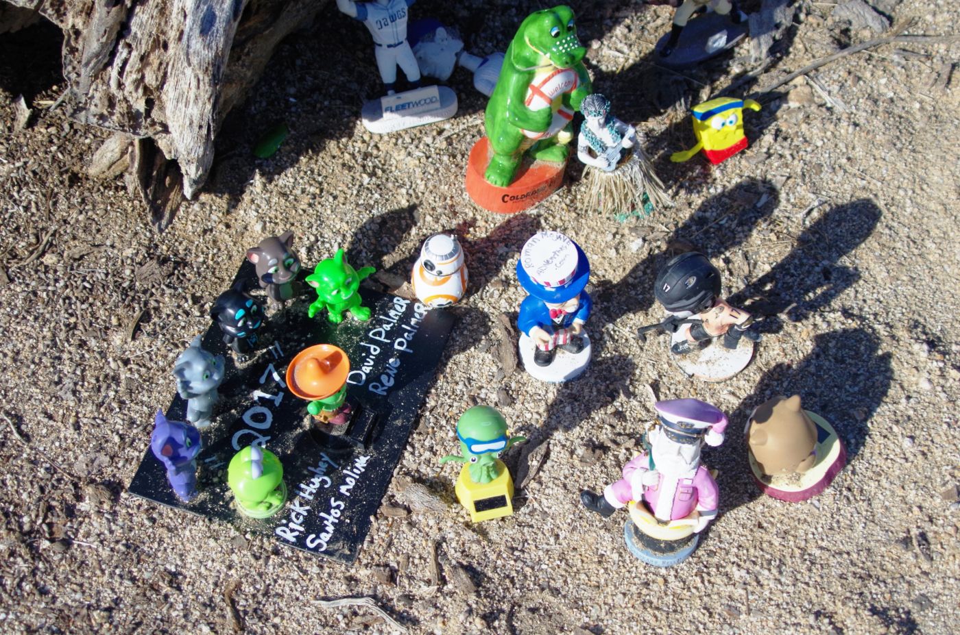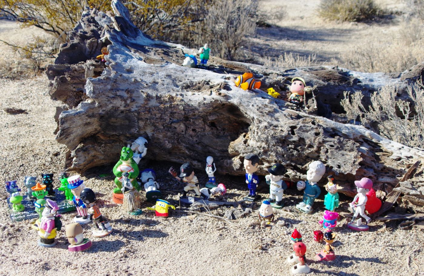 Our first destination was Marl Spring, one of a series of 5 springs along the Mojave Road between the Colorado River and Barstow that would also eventually become the sites of military posts or redoubts, some less than a fort, along the lines of a few huts and crude shelters.  Along the way, we came to a very strange place marked by a well-placed and secured mailbox.  I suppose that led to the erection of a series of odd collections of oddities, oddly placed, by probably some very odd people.  It is not my style, but it was odd, which is generally good.