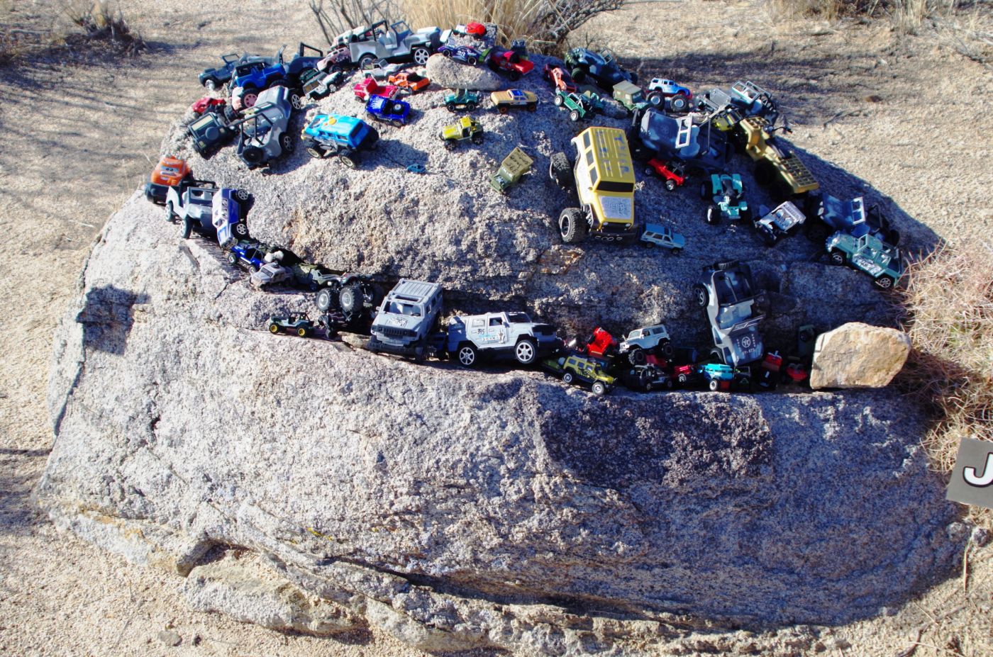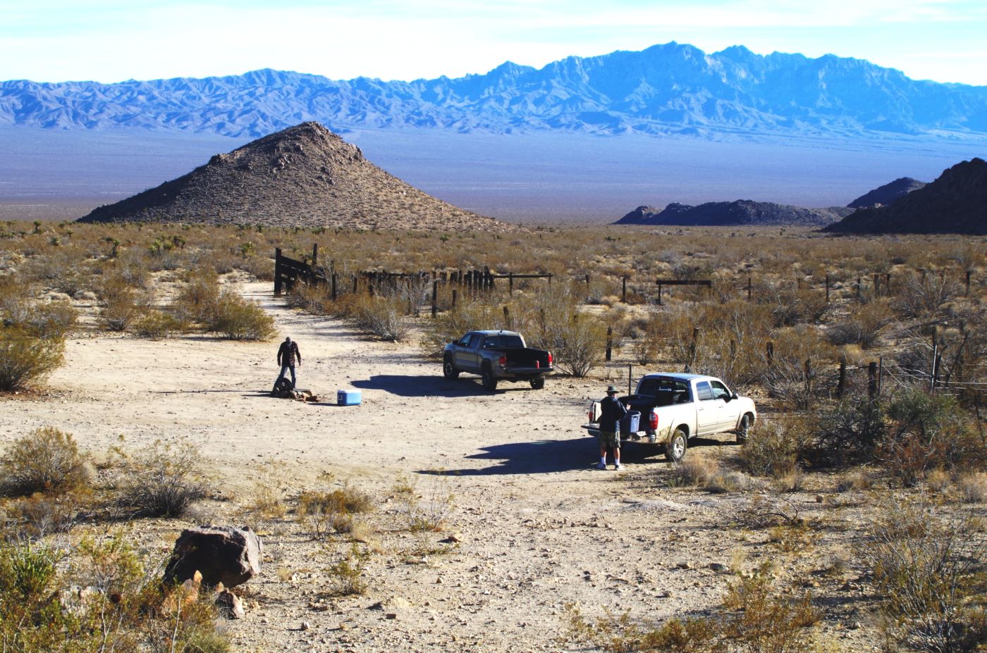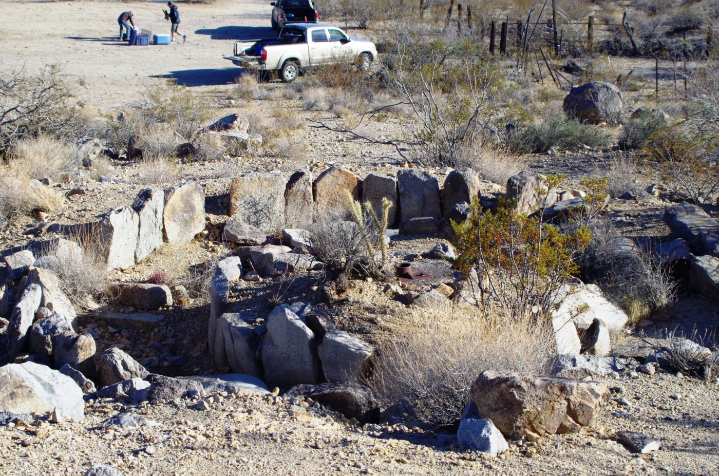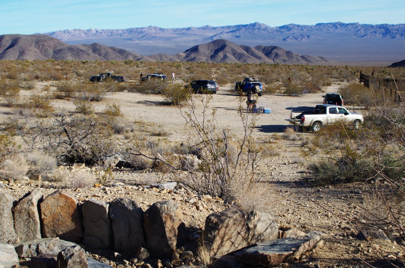 We found the old site of the spring, we saw some standing water and the coral, we found an old arrastre used to crush ore (not that we knew it at the time).  After some exploring we got the fire going and a beverage was had, just as another group of 6 or so rigs descended on us like a crappy scene from Las Vegas NCIS or some shit like that.  As fast as they drove in, they stopped a respectable distance away and didn’t spray us with dust or rock.  In fact they seemed just like us, just a couple decades younger.  They burst from their rigs, laughing and calling out to each other, heading to a nearby bush to pee, and just about as abruptly, started to pile back into their rigs.