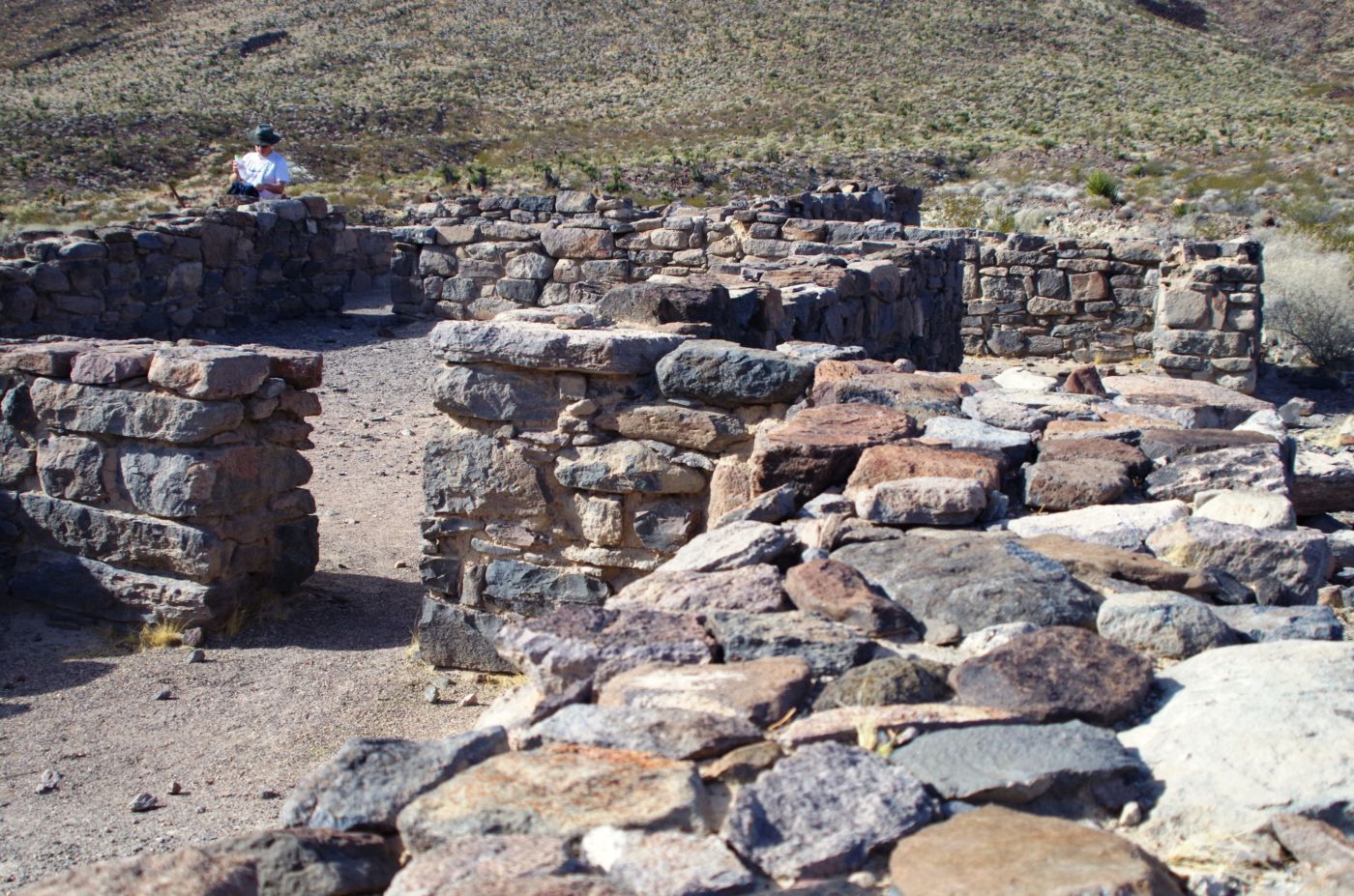 The stone remains of the Fort and corrals were obvious as was another large wooden post and wire corral.  According to a lone Jeeper that crawled all the way to the gate, the corral on the outer edge was the remains of a more recent turkey farm.  It is hard to believe being so far from a decent road or a potential market, but I guess it is possible.  Bob found some petroglyph looking markings on some rocks strewn about the turkey farm.  I would hope that if they were real, the NPS would have taken them away from their new use as a fire ring.  Bob also found the remains of a very cool cabin tucked up on a ledge above the creek, but below the ground level so almost invisible from the road.  All that was left was a beautiful stone chimney; no walls or roof remnants, and a simply stunning location.  The Fort was a great find.