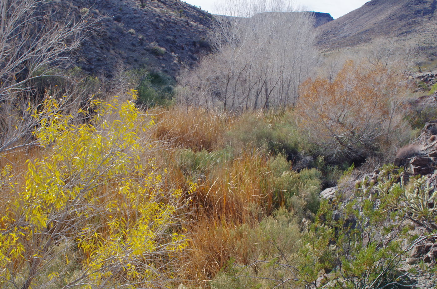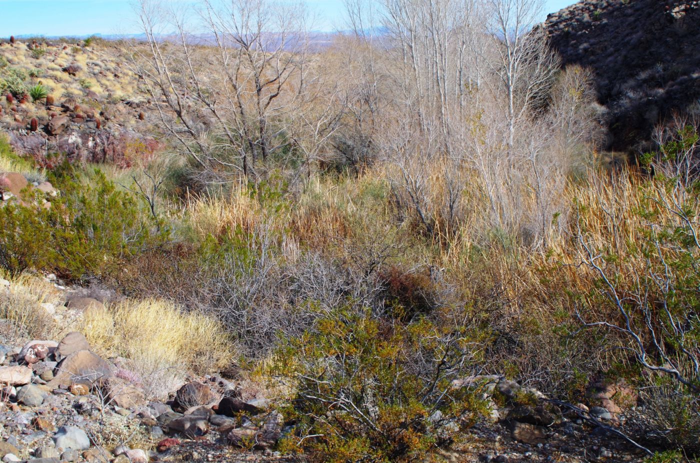 A little over a mile from the rig, we saw the remains of the Fort.  It was very cool. There was obviously another spring, and this one much more significant than any of the others, other than the stretch of the Mojave River through Afton Canyon.  There were many Cottonwoods and Willows, huge patches of reeds, and grasses in a large swath heading up into the higher reaches of the canyon.
