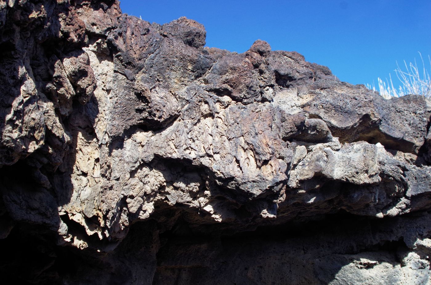 Turning up Aiken Mine Road, we started hunting red rock.  I wanted to show Bill the Lava Tube and perhaps head all the way into Aiken Mine, which I think was a place I took Gabe, Ingrid, and the kids to when we stayed at Afton Canyon some 20 years ago.  There were only 4 people at the Lava Tube and 2 were leaving as we walked in.  We didn’t bring headlamps or flashlights for some reason.  I don’t recall having them with Bob, but perhaps we did.  It was too dark to go into the main chamber without lights and Bill, being so tall, would have had to really struggle, so we just hung in the caved-in portion at the bottom of the ladder for a bit.