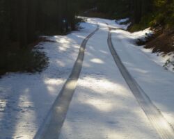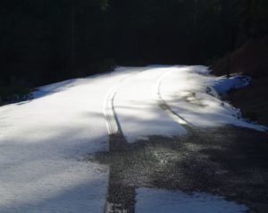 We got our tags and headed up the hill. The Sierra’s were covered in snow, absolutely sparkling white as we headed out of town, but I assumed most of it was at higher elevations. We were only going up to about 5000’, or so I thought. I visualized some snow on the ground, a dusting maybe, but there was a lot of snow on Silver Fork Road, way before we started the real climb up Packsaddle. I began to wonder if we would make it, and even though I would be disappointed, I didn’t want to get all pissed off, especially for a shortcoming that hadn’t happened yet.