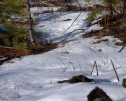 We made it down, turned around, and backed right up to the pile of cedar posts I had left. It was awesome. I was so excited we made it up and the logs were still here, and we got all the way back to them. As I scouted about finding the logs I had leaned against trees, or upon stumps to keep them out of the snow, I was regaling Bill with the stories of when Steve and I were here. As I was stumbling about, I came to a stump with our wine glasses and the opener still sitting there as if it were just left yesterday. What a greeting.