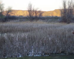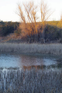 As we neared the pond, we saw some trees and I noted it would be great if we could get into them as they were so rare out here. Sure enough we went right to it; a great bowl below the road, protected from the wind, with trees, a small lake, grasses, reeds, and tons of birdies. This was a sweet spot, so good in fact it challenged to be worth the drive up here. Good luck getting down…