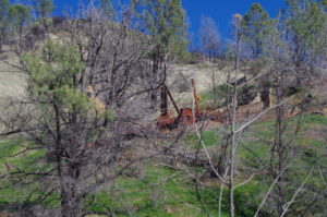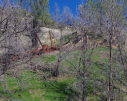 The most likely access onto Road 40 was a few miles beyond Knoxville toward Morgan Valley, just past the turn off to the Homestake Mining Operation, which is now part of the UC Davis McLaughlin Reserve. The intersection was obvious, the gate open, and the road in good shape. This last part changed rapidly and radically. Through beautiful Bosch Canyon and some sweet homesteads, past remnants, equipment, buses, and other assortment of history from the Manhattan mine, owned and operated by