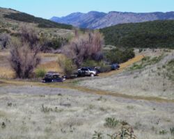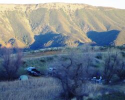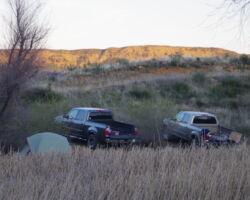 With mind clearing and body loosening up, we hiked up the road a mile or so. Bill and Tom spied some trees above the ridgeline in the distance; a beautiful silhouette of deciduous tree limbs against the intensely clear blue sky. We had gone “just one more bend” several times now and the time had come to face the drive back. It was a great hike to loosen up, clear out and refresh. Bill and Tom were staying a second night, so Steve and I packed up and loaded the rig in short order. I wished now that we had brought more wood, as the night before proved to be a higher fire risk than anticipated. However, there was plenty of brush along the road to gather and Bill and Tom are indeed resourceful.