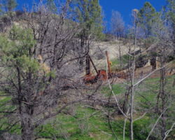 The boys helped us load the rock and Steve drug out some of the brush for them. I was good with leaving after one night as I was mid pond expansion and Steve had a dinner to get to, but I really was concerned about getting down that dam road. There were 2 spots in particular that seemed to have a hump on the inside track directly opposite an area of eroded road on the outside such that the truck watch being pitched over the edge at a point where the outside tires were bouncing over a notch where the water had carried the road away – far down to the creek below.
