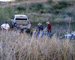 We stopped at a BLM day use area, had a beverage, and walked down to the lake to see what we could see. Sure enough, we found some driftwood that would look great at the pond. Bill and Tom arrived shortly, despite not receiving the kind of assurances from us that we had crossed over 2 bridges and were still in front of them. Steve and I must have been chatting it up or just tripping on the scenery because I don’t recall if we crossed bridges or just elevated road above wetlands, or if it was a causeway, or jetty, or land bridge or how many there may have been. I believe Bill still suffers from the ridiculousness of Ken and Dave not finding us at the end of the road despite their best efforts, and so he puts a bit more energy into directions and meeting locations. I on the other hand, rely on years of luck and outrageousness to make sure the boys are united in the end. When Bill and Tom arrived, they too received a rock or a log to put in the rig for later use.