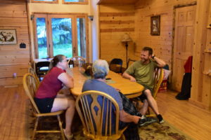 Our first day up there was spent lounging after the huge drive and taking short walks on the dirt roads of the property. The other homes were spread some distance away so you really felt like you were out in the woods when out of the house. I recall Jo forgetting her medications so they had the neighbors go into the house and Nick used his UPS connections to get them delivered to a store not too far away. It was quite the commotion.