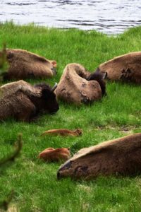 We only had one minor interaction with some yahoos that stopped in the middle of the road to look at a few buffalo that were relaxing down by the river with their young. It was a beautiful spectacle to see with no one else around. This was a huge day with lots of driving, but it was all spectacular country and beautiful vistas, and interesting changing weather. We were pretty thrashed when we got home. Thank god someone else was cooking dinner and all I had to do was eat and climb the stairs to bed.