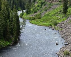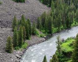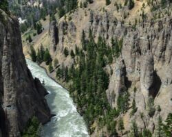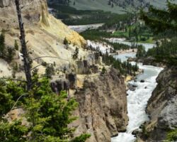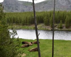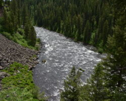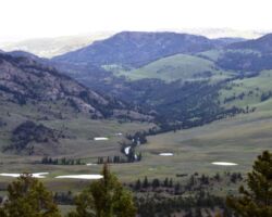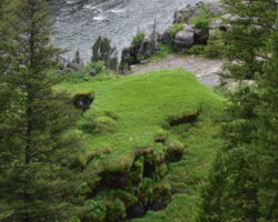 We headed up Highway 191 along the Madison River. As I write this story and doing the googol map research, I am reminded of one of my prior trips to Yellowstone where I was able to walk from my campsite into a cold river and then over the hill from that to a hot river. I remember going back and forth a number of times between the hot creek and the cold. There were other people around, but it was not mobbed or the madhouse it would be today apparently. I have never been able to piece together my memories on subsequent trips, but this place sounds like a possibility. Between the Madison River and the Firehole River or Terrace Spring, this could be the place. I am almost certain I walked from the campground, so it had to have been close.
