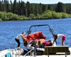 Island Park is a beautiful little community of large homes on large parcels built primarily around Island Park reservoir in the Northeast corner of the lower square part of Idaho, just 30 miles from the West entrance to Yellowstone National Park and Wyoming. Rick rented a massive place on the reservoir for us and even bought a boat just for the trip. What a guy. We had a ton of fun eating and playing games around the huge kitchen table, preparing meals in the massive kitchen, and sleeping in our upstairs bedroom with a little deck overlooking the lake.