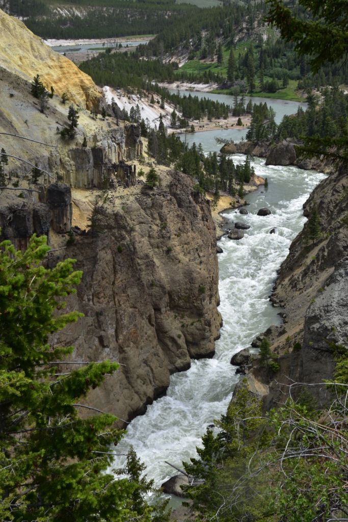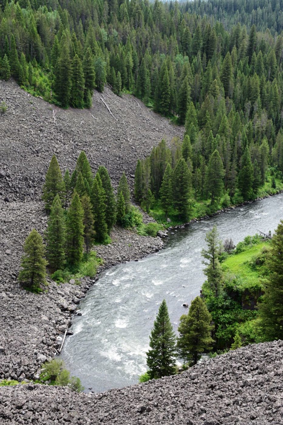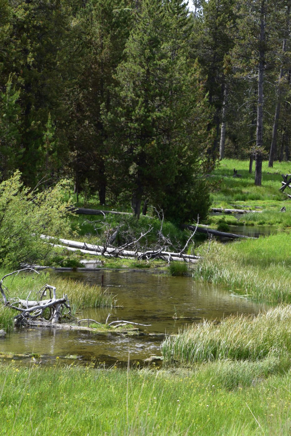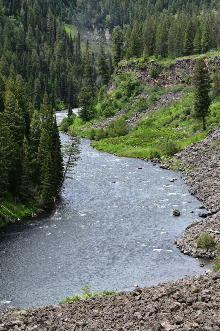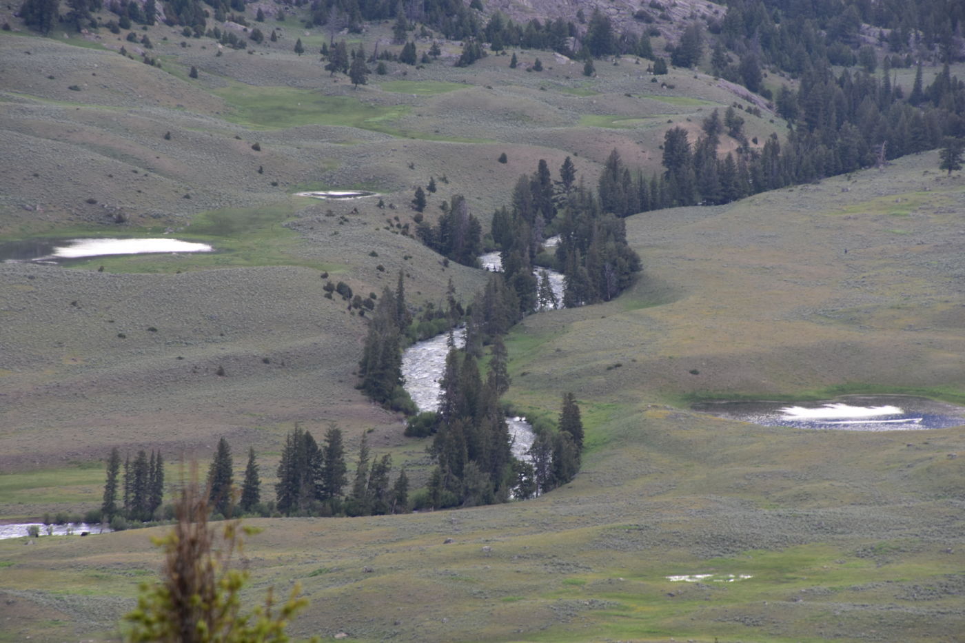 We headed up Highway 191 along the Madison River. As I write this story and doing the googol map research, I am reminded of one of my prior trips to Yellowstone where I was able to walk from my campsite into a cold river and then over the hill from that to a hot river. I remember going back and forth a number of times between the hot creek and the cold. There were other people around, but it was not mobbed or the madhouse it would be today apparently. I have never been able to piece together my memories on subsequent trips, but this place sounds like a possibility. Between the Madison River and the Firehole River or Terrace Spring, this could be the place. I am almost certain I walked from the campground, so it had to have been close.