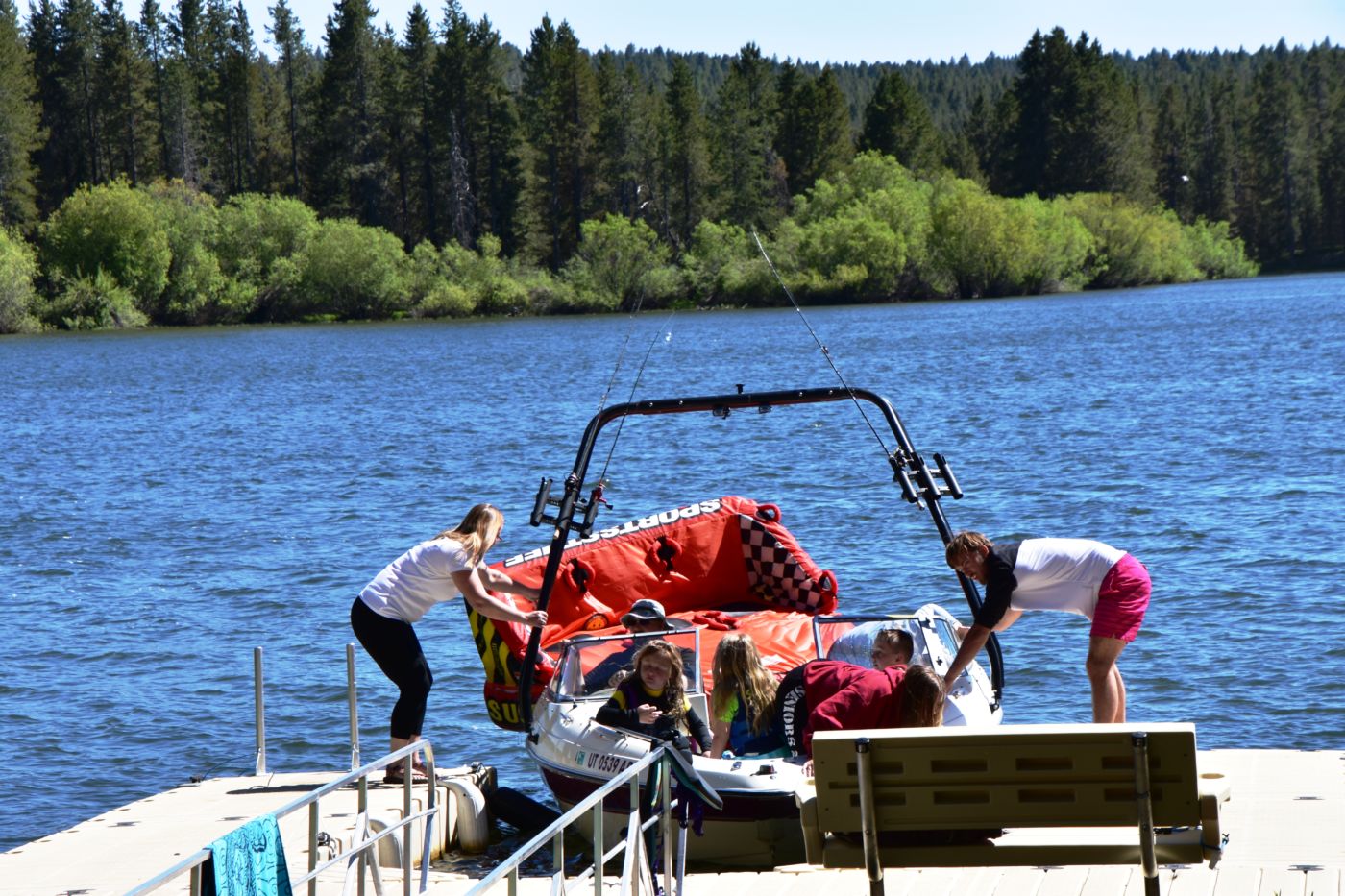 Island Park is a beautiful little community of large homes on large parcels built primarily around Island Park reservoir in the Northeast corner of the lower square part of Idaho, just 30 miles from the West entrance to Yellowstone National Park and Wyoming. Rick rented a massive place on the reservoir for us and even bought a boat just for the trip. What a guy. We had a ton of fun eating and playing games around the huge kitchen table, preparing meals in the massive kitchen, and sleeping in our upstairs bedroom with a little deck overlooking the lake.