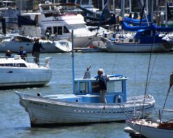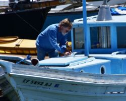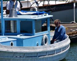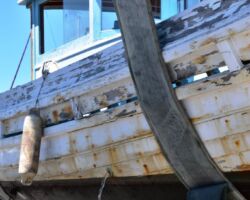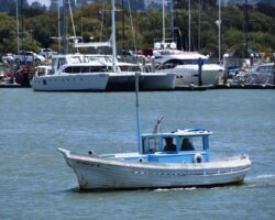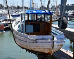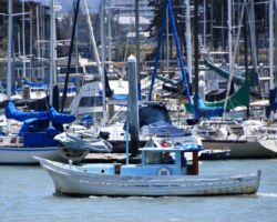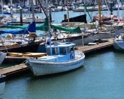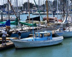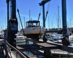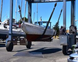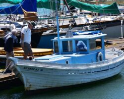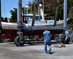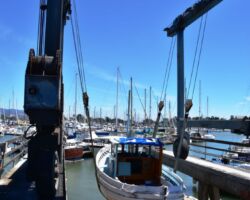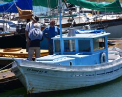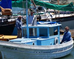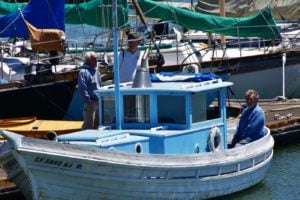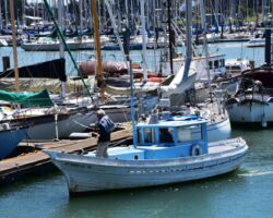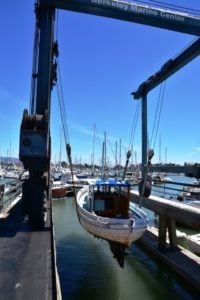 This was a huge and exciting day for Mike and his then partner Gregg to bring the boat into the Marina for some major attention. Mike fulfilled a lifelong dream of boat ownership by buying this 1947 Monterey Clipper which were renowned fishing boats up and down the California Coast. It is the quintessential boat in San Francisco’s historic Fisherman’s Wharf and the mainstay of the sardine fishing fleet during Monterey’s Cannery Row heyday. It is the logo for the Noyo Harbor at Fort Bragg. Joe DiMaggio’s family had one in San Francisco that he used to work on with his brothers to bring fresh fish, shrimp, and crab to the family restaurant. It is about as famous a boat as you will find on the West Coast.
