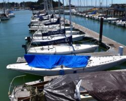Mike and Gregg agreed to a purchase price of $500, for which Mike got a wooden boat which needed a lot of work on the wood surface and on the engine, and an unknown amount of work below the water. This day was the day Mike and Gregg braved the unknown to sail her from her berth in Alameda to the Berkeley Marina Dry Dock where she would be pulled out of the water, inspected, and then evaluated for what needed to be done to get her back in shape. As exciting as it was for us, I am sure Mike was somewhat terrified at the prospects.