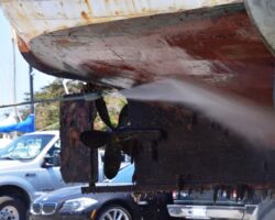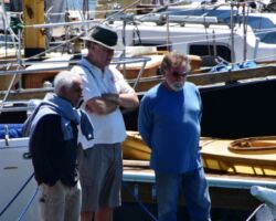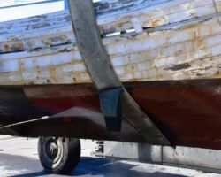 They made the trip without incident and Bill, Steve, and I were at the Marina to greet them. It was a glorious day, and everything went according to plan. When she was washed off, her hull was not as deteriorated as some may have thought. All in all, she looked pretty good. I don’t recall exactly how long she stayed in dry dock, but it was 6 weeks or so. Much of the hull and keel were replaced, and a lot of decking was repaired. While expensive, and certainly more than Mike had hoped, it was totally worth it.