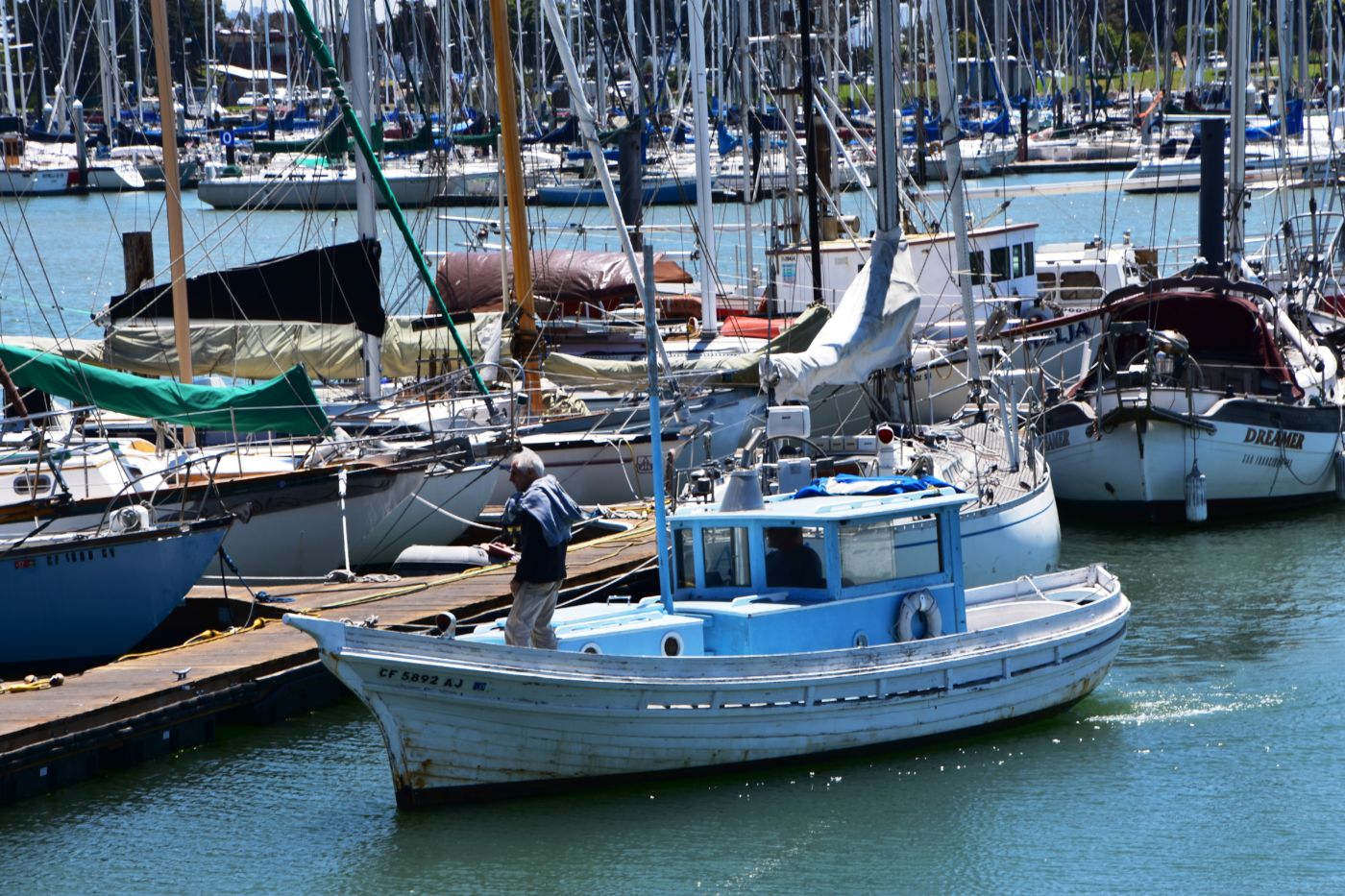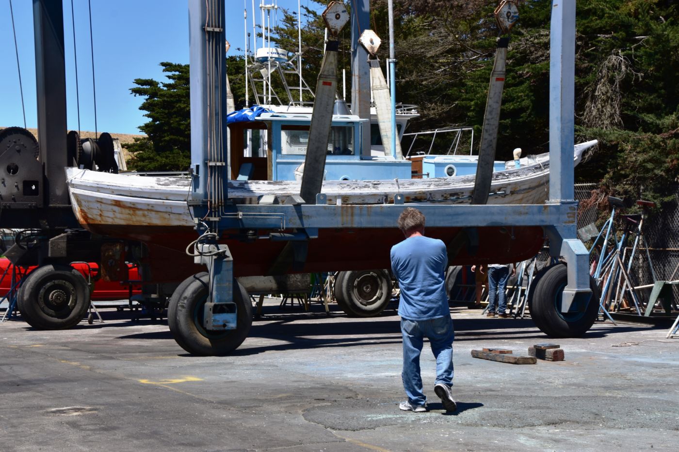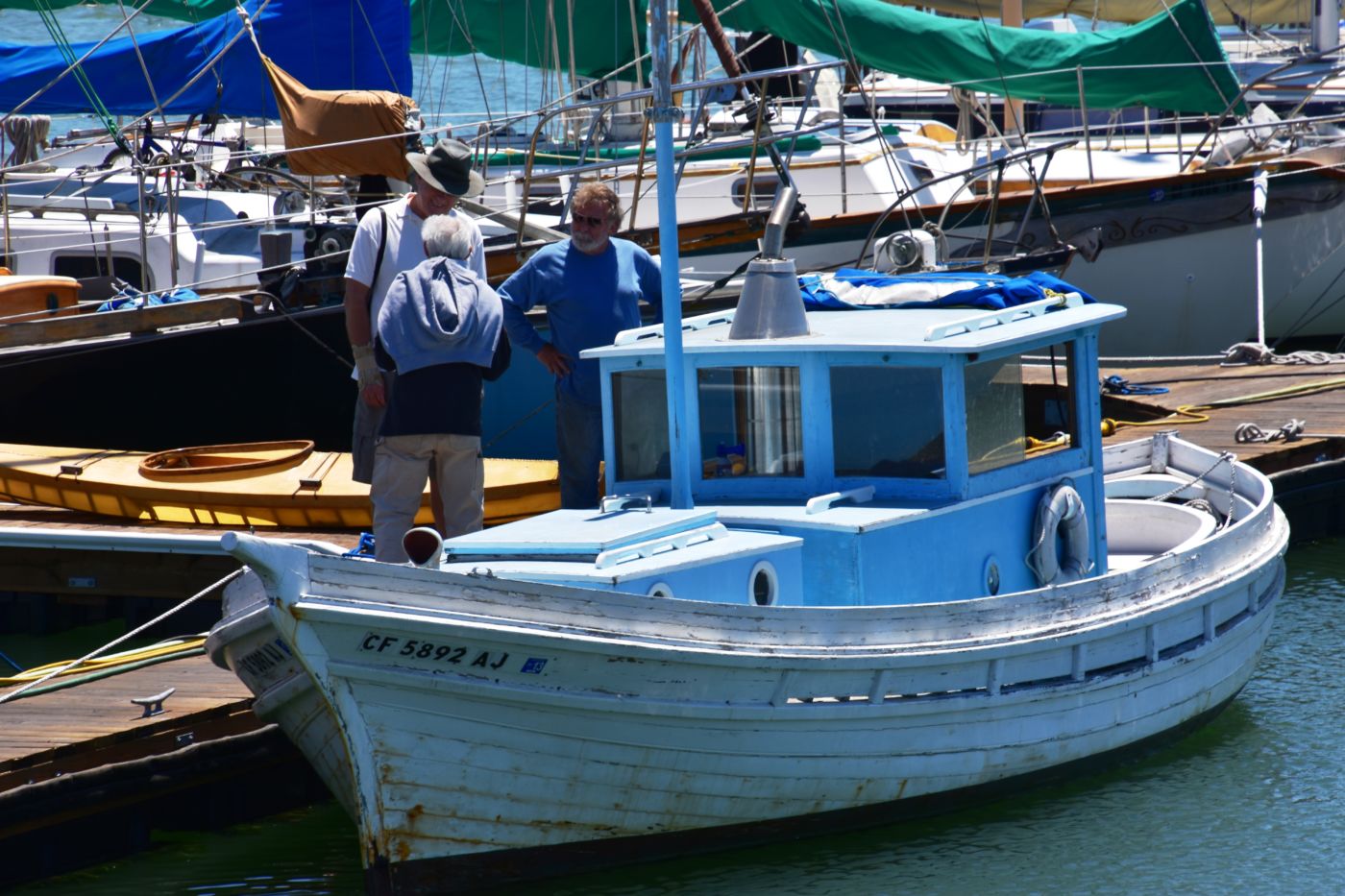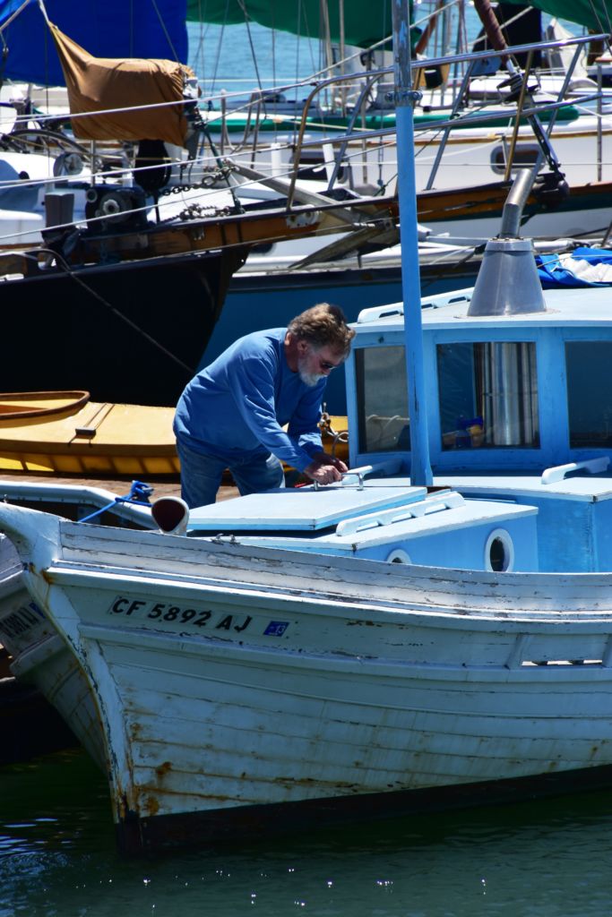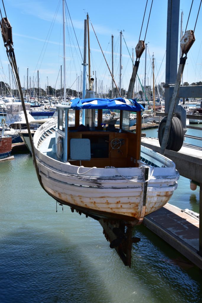 This was a huge and exciting day for Mike and his then partner Gregg to bring the boat into the Marina for some major attention. Mike fulfilled a lifelong dream of boat ownership by buying this 1947 Monterey Clipper which were renowned fishing boats up and down the California Coast. It is the quintessential boat in San Francisco’s historic Fisherman’s Wharf and the mainstay of the sardine fishing fleet during Monterey’s Cannery Row heyday. It is the logo for the Noyo Harbor at Fort Bragg. Joe DiMaggio’s family had one in San Francisco that he used to work on with his brothers to bring fresh fish, shrimp, and crab to the family restaurant. It is about as famous a boat as you will find on the West Coast.