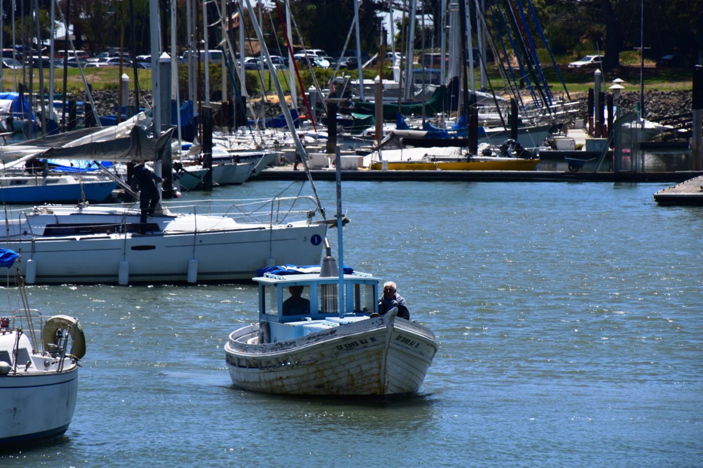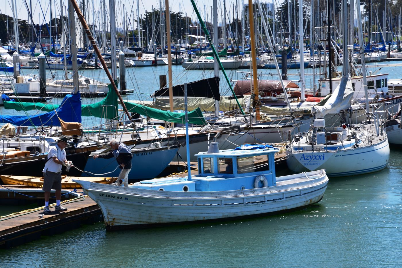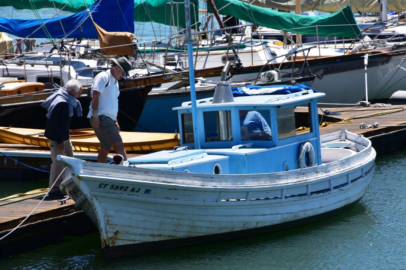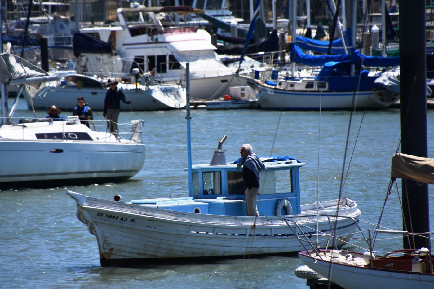 This was a huge and exciting day for Mike and his then partner Gregg to bring the boat into the Marina for some major attention. Mike fulfilled a lifelong dream of boat ownership by buying this 1947 Monterey Clipper which were renowned fishing boats up and down the California Coast. It is the quintessential boat in San Francisco’s historic Fisherman’s Wharf and the mainstay of the sardine fishing fleet during Monterey’s Cannery Row heyday. It is the logo for the Noyo Harbor at Fort Bragg. Joe DiMaggio’s family had one in San Francisco that he used to work on with his brothers to bring fresh fish, shrimp, and crab to the family restaurant. It is about as famous a boat as you will find on the West Coast.