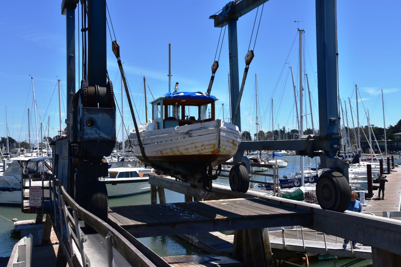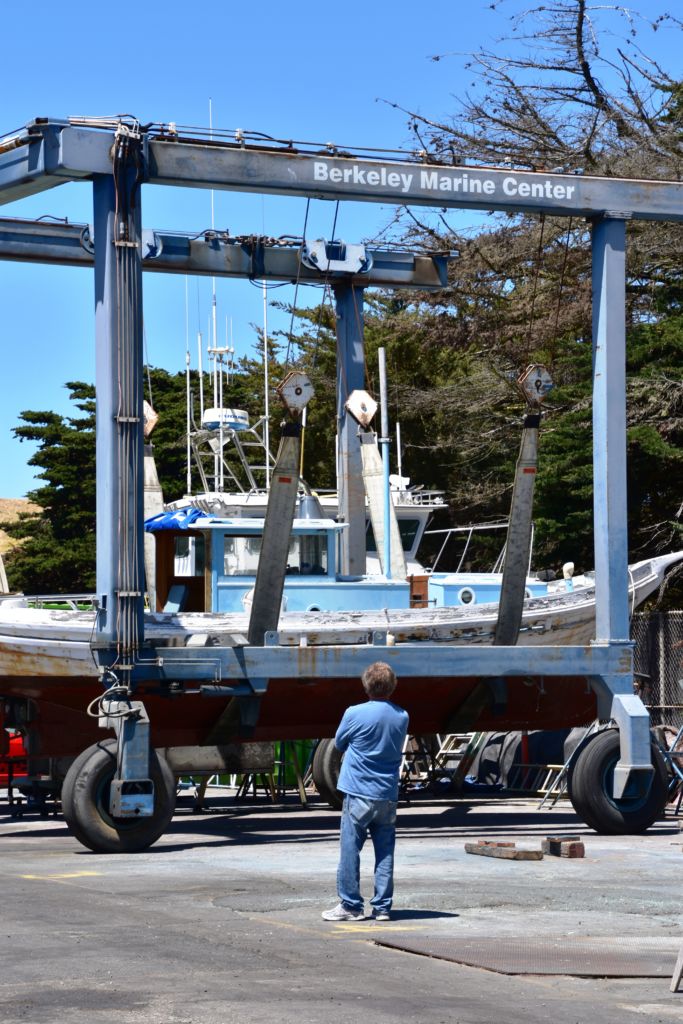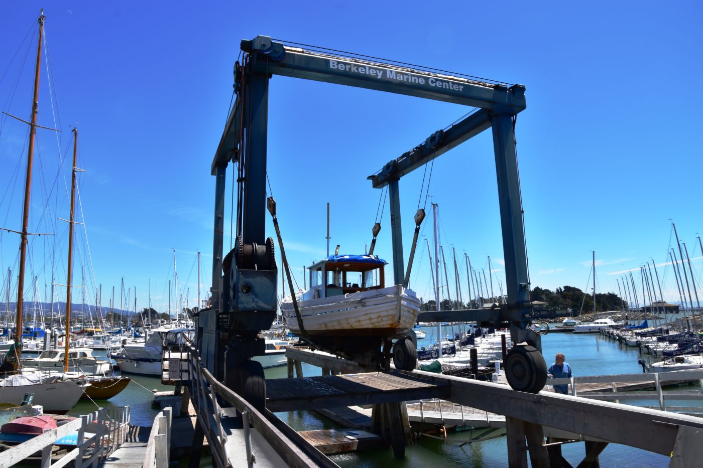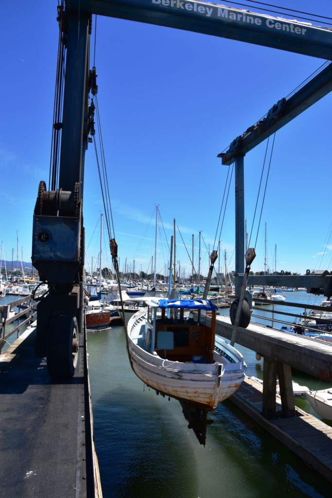 Mike and Gregg agreed to a purchase price of $500, for which Mike got a wooden boat which needed a lot of work on the wood surface and on the engine, and an unknown amount of work below the water. This day was the day Mike and Gregg braved the unknown to sail her from her berth in Alameda to the Berkeley Marina Dry Dock where she would be pulled out of the water, inspected, and then evaluated for what needed to be done to get her back in shape. As exciting as it was for us, I am sure Mike was somewhat terrified at the prospects.