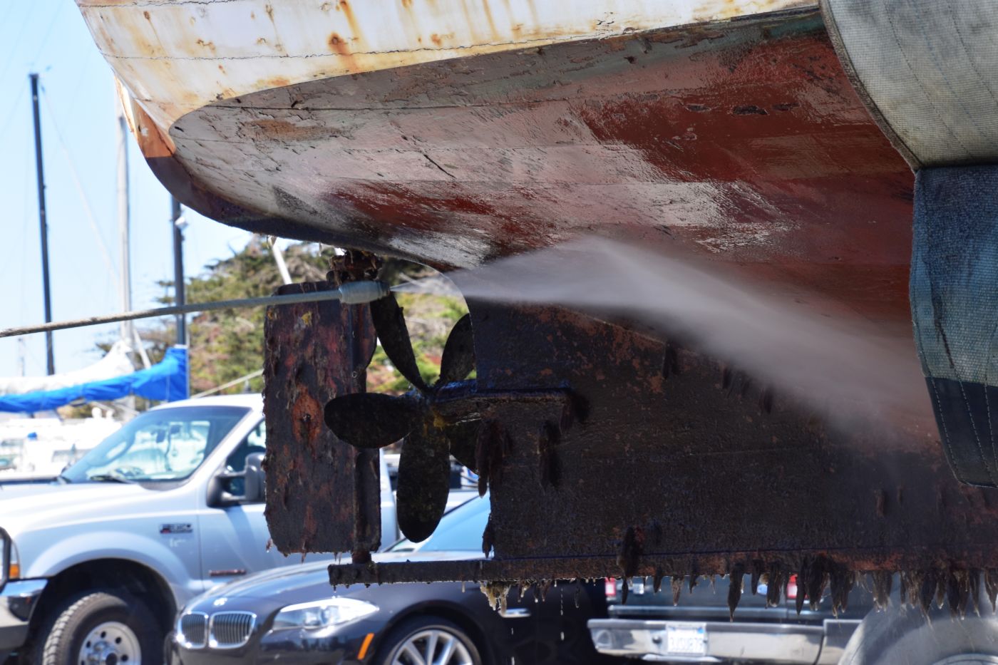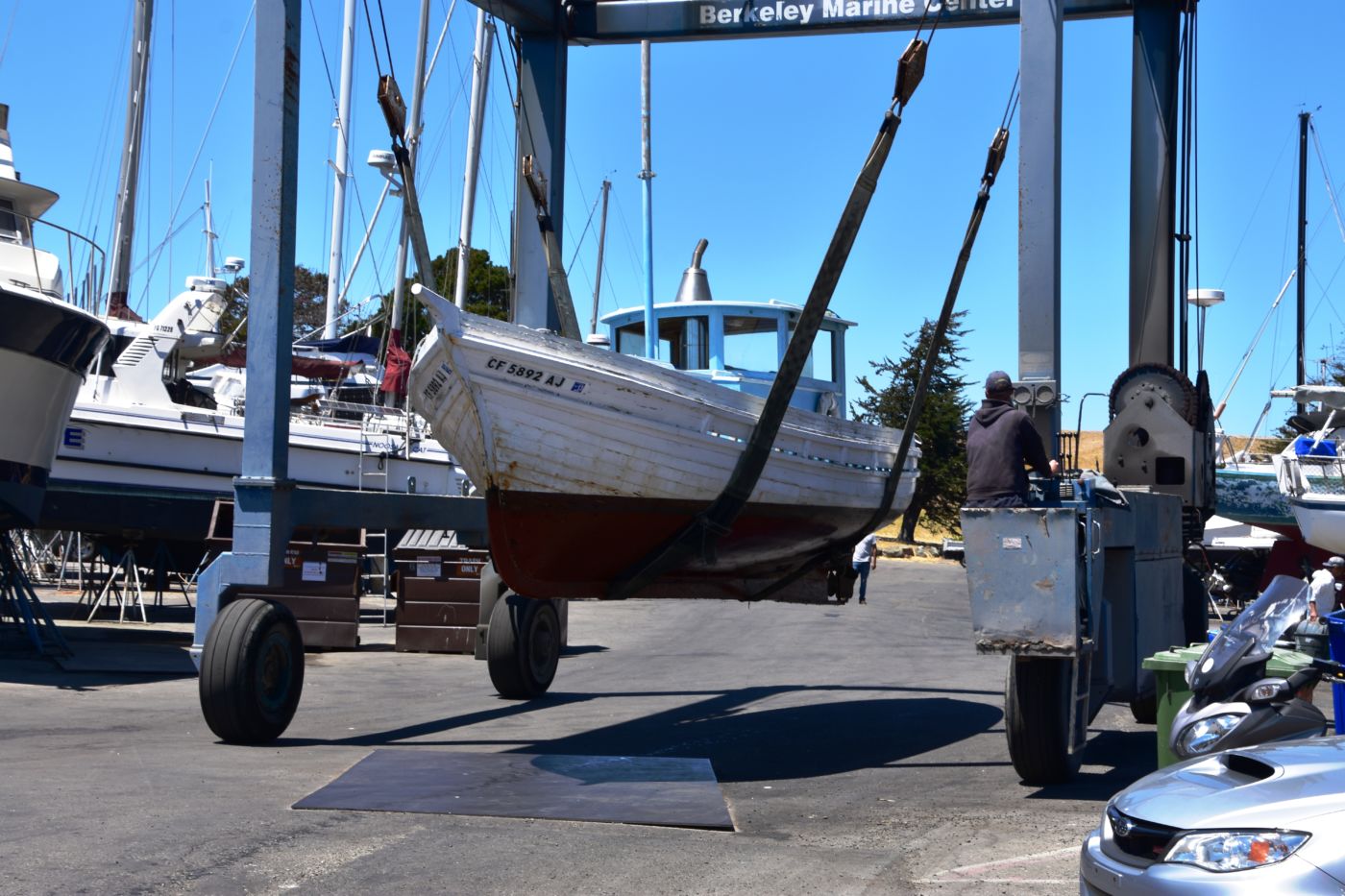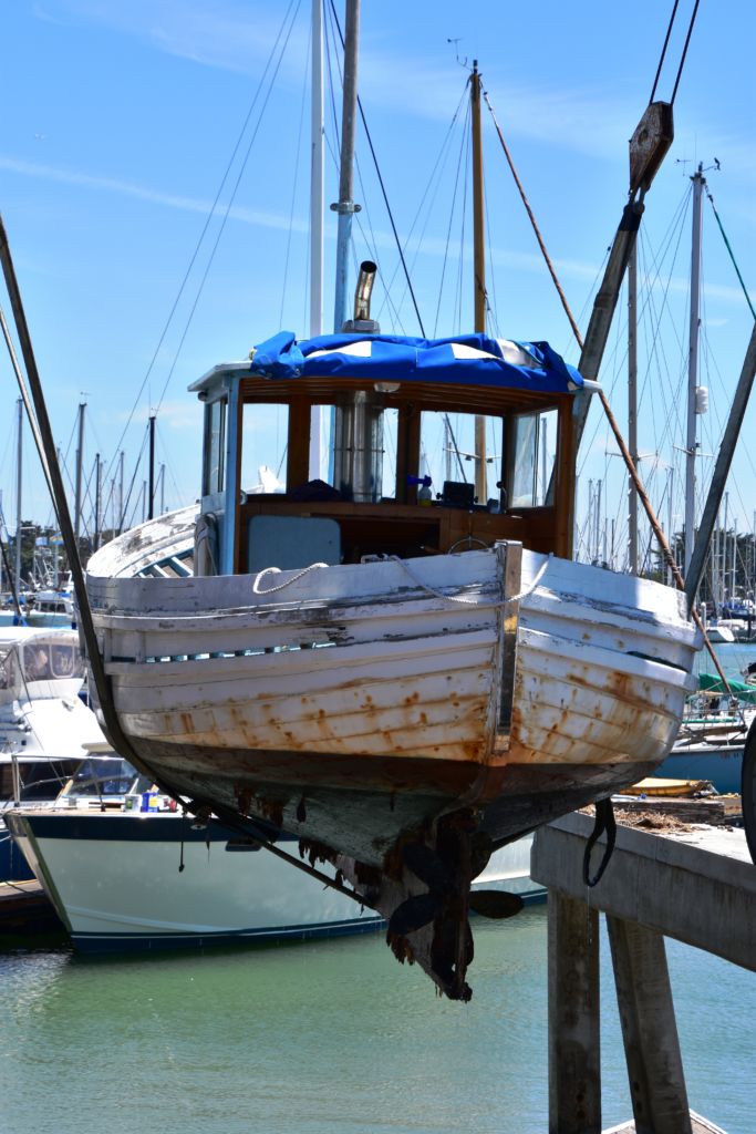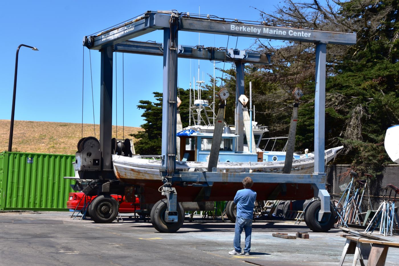 Mike and Gregg agreed to a purchase price of $500, for which Mike got a wooden boat which needed a lot of work on the wood surface and on the engine, and an unknown amount of work below the water. This day was the day Mike and Gregg braved the unknown to sail her from her berth in Alameda to the Berkeley Marina Dry Dock where she would be pulled out of the water, inspected, and then evaluated for what needed to be done to get her back in shape. As exciting as it was for us, I am sure Mike was somewhat terrified at the prospects.