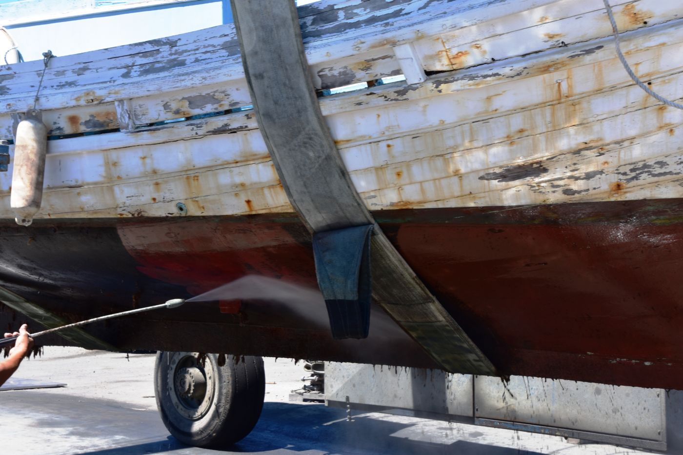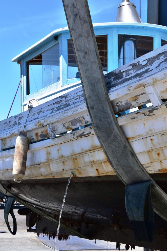 They made the trip without incident and Bill, Steve, and I were at the Marina to greet them. It was a glorious day, and everything went according to plan. When she was washed off, her hull was not as deteriorated as some may have thought. All in all, she looked pretty good. I don’t recall exactly how long she stayed in dry dock, but it was 6 weeks or so. Much of the hull and keel were replaced, and a lot of decking was repaired. While expensive, and certainly more than Mike had hoped, it was totally worth it.