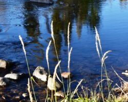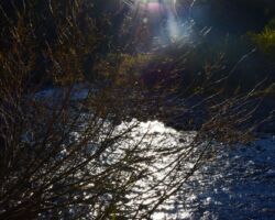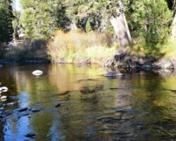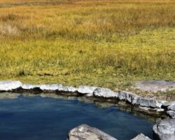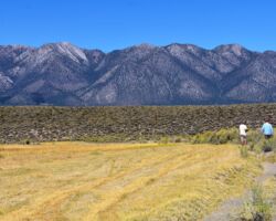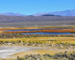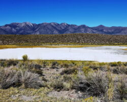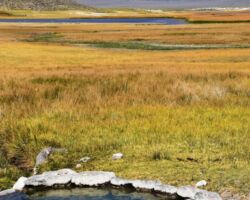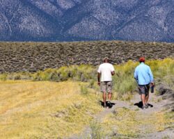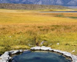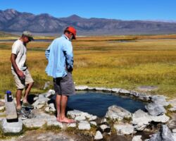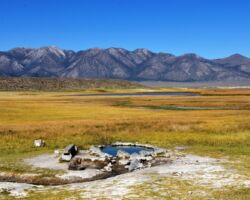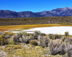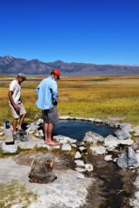 There weren’t any sites within sight on one side of us and the next site was open for the first night, so it was pretty sweet in the campground.  Plus we had clear unobstructed access to the river behind our site, which made for very pleasant relaxation.  We also found respite in a couple hot springs.  We headed out one day into Owens Valley to hit 3 hot springs.  I recall one being too hot to get into.  I have photos of us walking out some distance from the rig, but have no idea of what the names of the springs were, or how we found them, other than following my Hot Springs of California/Nevada book, which of course I can’t find now.  In any event, the pictures look nice.