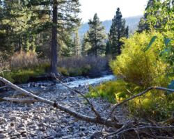I believe we had a local day, heading to Red’s Meadow Resort and hitting the little store there, checking out all the backpackers, and making some phone calls.  We took a hike along the river and went to see the Devil’s Postpile National Monument, had a nice little tailgate lunch and beverages.  When we got back to camp, we had neighbors, 2 or 3 younger couples if I recall.  They stayed up late, but weren’t too noisy.  On our way home is apparently when we hit the Obsidian.