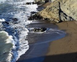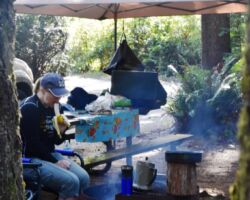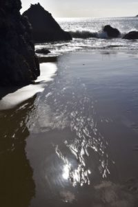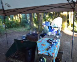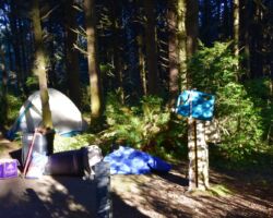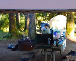 The weather turned a little drizzly the next day so we set up the rain tent over the table and fire and that took care of it. We went into Port Orford, passing some super cool Cranberry fields. We stopped in town an outstanding lunch at Redfish, outside overlooking Battle Rock Wayside Park. We walked down along the beach and took a ton of pictures. Everything seemed so clean and vivid; we had a great time. Back up at the park, they have a visitor’s center. The old timer in there was a super nice guy and we talked and talked, it just being the 3 of us.