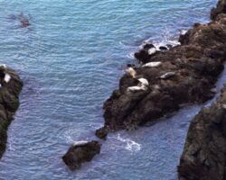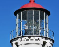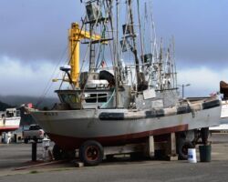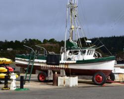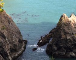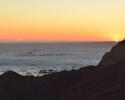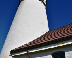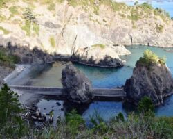 It was already a great day, but we were out and about so we wanted to squeeze in a visit to the Port Orford Lighthouse Station up on a bluff within Port Orford Heads State Park. Most everything was closed by the time we got there, but we could see the Lifeboat station constructed in 1934, the former crew quarters which is now a museum, and a lifeboat on display in the courtyard. A trail heads up to an overlook of Nellie’s Cove where the boathouse sat and a rail-mounted carriage used to launch the boats. The piers and concrete breakwater are still visible.