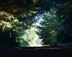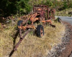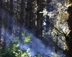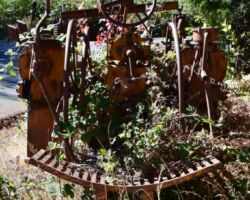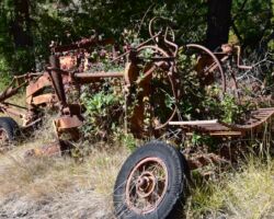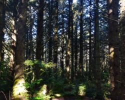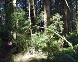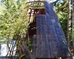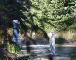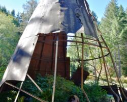 The next day we decided to head inland to see what the mountain country was like. We headed North on 101 a few miles into Langlois and ate at the Spoon. After lunch, we headed East up Langlois Mountain Road. We passed on old mill site with the remnants of an old fashioned tipi-burner where they would burn all the bark and mill-ends to dispose of them. The road got smaller and smaller and split off to people’s property, until we finally reached a gated fence, the literal end of the road.