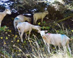 Fortunately, the wind blew out by morning and it was a gorgeous day. We walked along the beach and saw a herd of sheered sheeps that looked like they had been attacked by paint ballers. They were kinda silly looking. By the time we headed up to see the lighthouse, they had stopped doing tours, but we were able to hit the gift shop and buy some shirts.