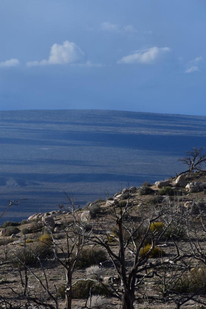 We decided to head towards the New York’s and see how far we could get.  It was pretty incredible how quickly and significantly the roads had improved since we had tried to drive through here just 2 days ago.  Our hopes were high, that even though we hadn’t been able to camp where we intended, we could at least get back in there and see what it was like.  We made it easily past where we turned around, past Rock Springs, and finally turned on the well-marked New York Mountains Road.  We passed a couple large solar panels on a commercial set-up, portending of a significant homestead or ranching operation behind the gates.  We stopped in a bit for a celebratory beverage and to soak in the warm, open sky.  All signs were good.