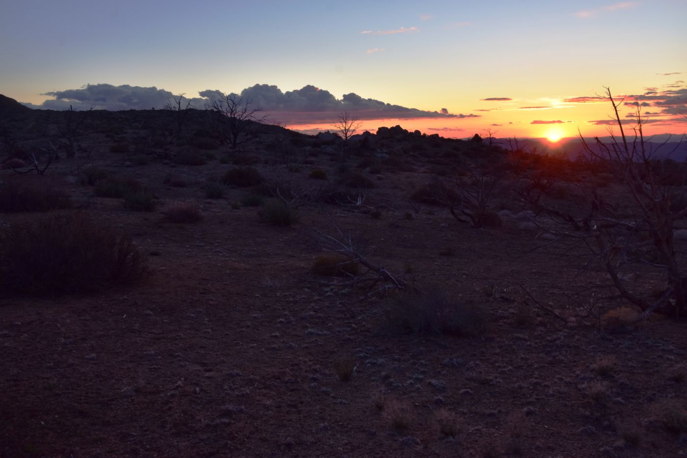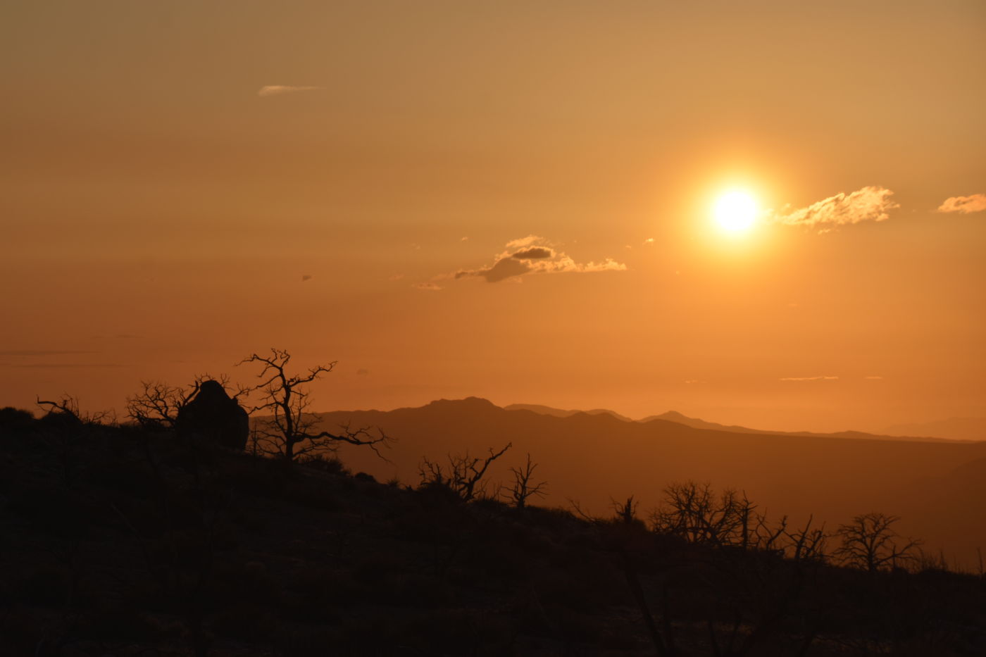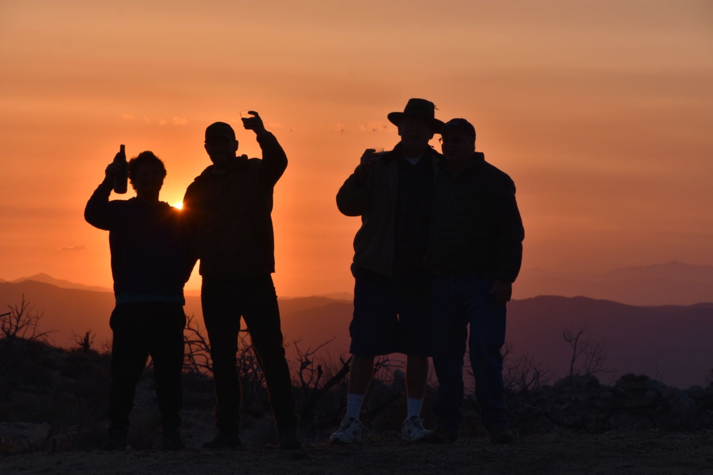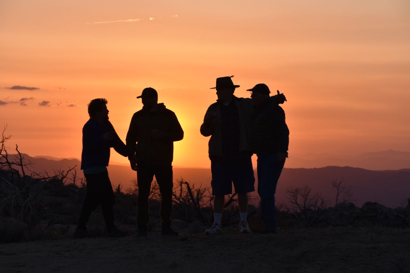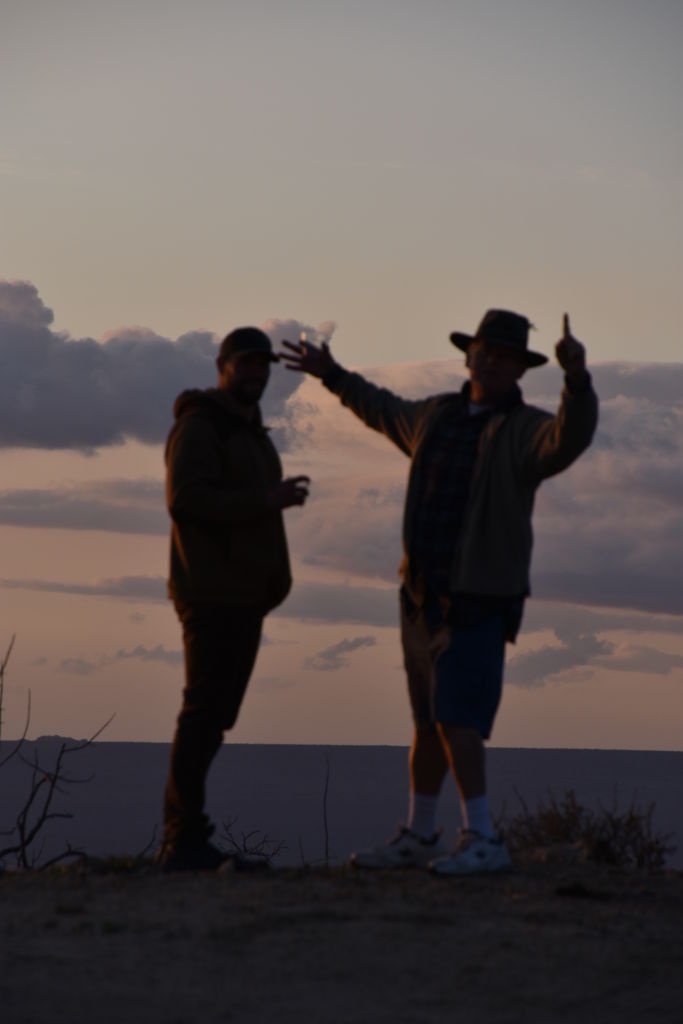 The wind prevented it from being silent, although there were no branches or leaves for the wind to play on.  The sound was enjoyable.  I strolled aimlessly back towards camp, until cresting a small rise to take a bearing, I realized I wasn’t headed towards camp at all, but rather down the hill to the North.  A slight course change brought me to our rigs, the fire, cocktails, and heavier clothes.  Tom made these awesome marinated chicken tacos with chunks of vegetables and a delicious yogurt-like dressing, like a Tzatziki sauce and some shawarma rice.  What a great meal.  We had a fairly large fire as Bill voided our discretion protocol and began hauling large trees right into camp.  It was our duty to burn all trace.