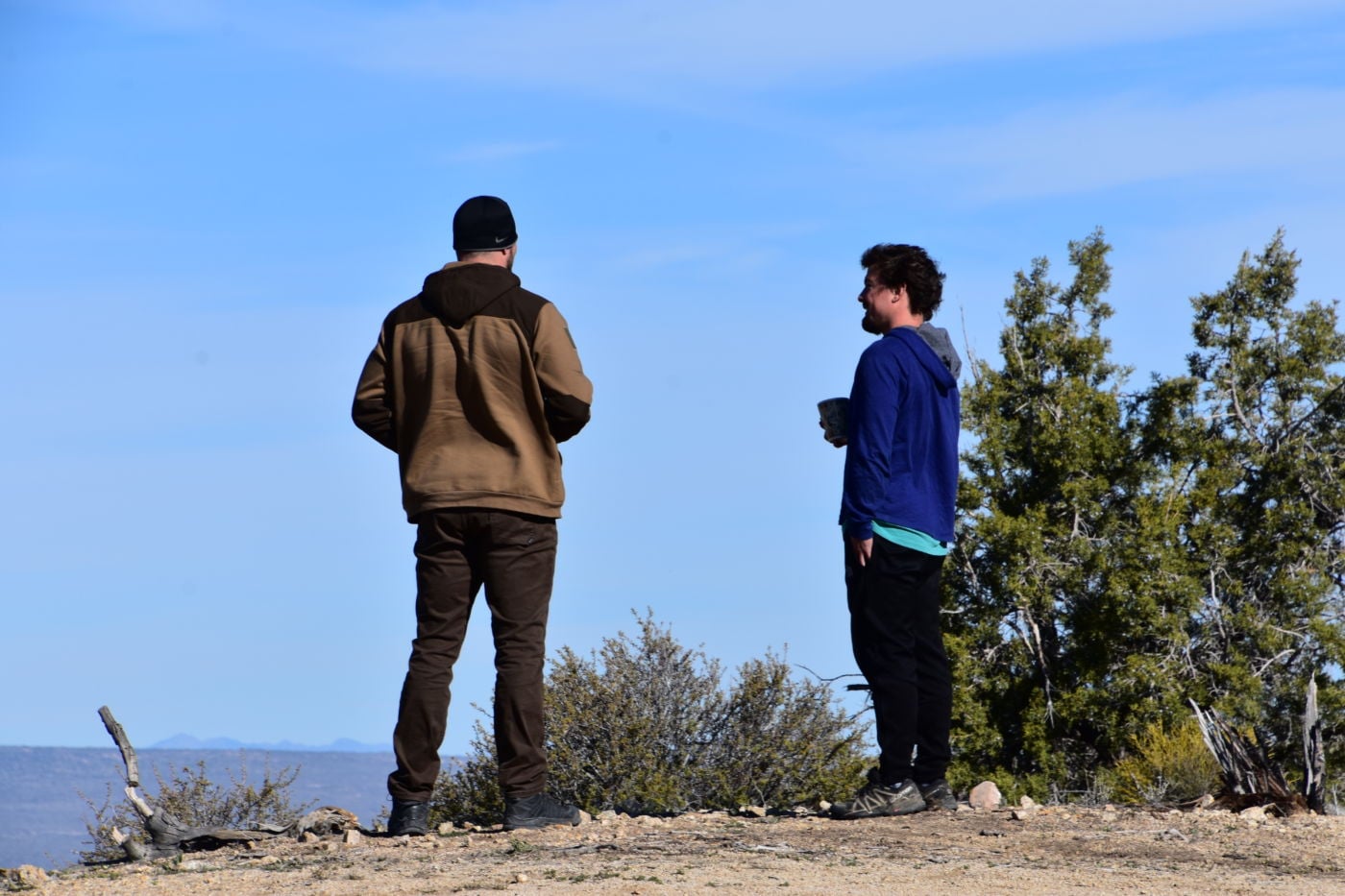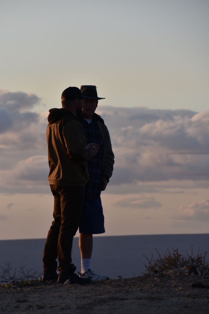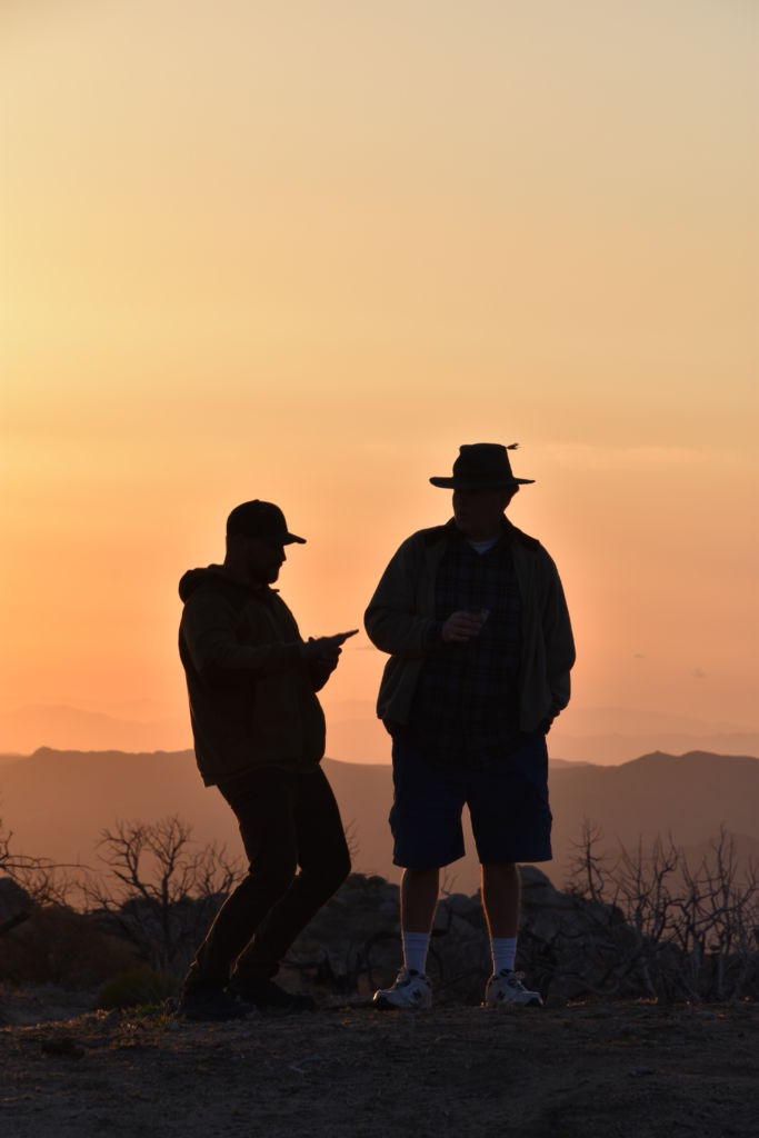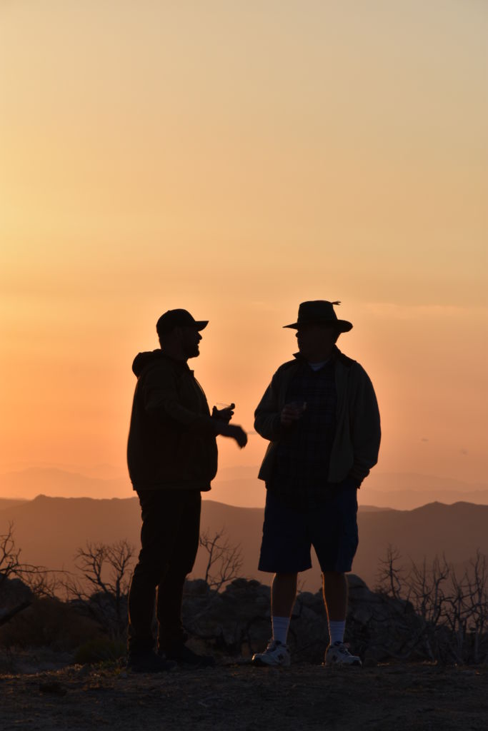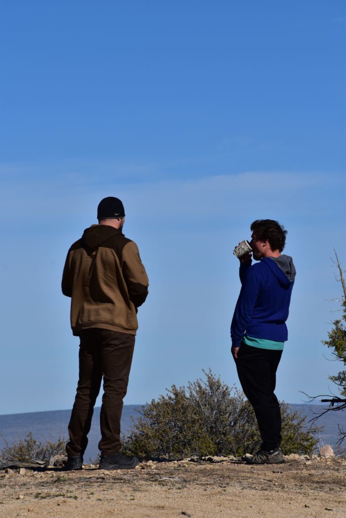 Jordan and David set up their tents and organized their stuff.  Jordan didn’t have an ice chest so all his meat and fish were just in the trunk in the grocery bags.  We got everything situated on ice and were in good shape by late afternoon.  Jordan pulled out a bottle of Bulleit Bourbon that I don’t think left his hand for 8 hours.  We had shots and then he and David struck out West, with nothing but the bottle in hand.  Tom, Bill, and I ventured up the road to see if there were still people camped and to check out the end of the road.  We could see the boys on top of the nipple, 2 silhouettes’ against the distant sky.