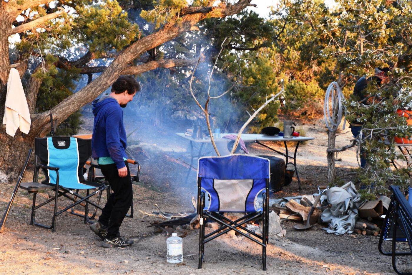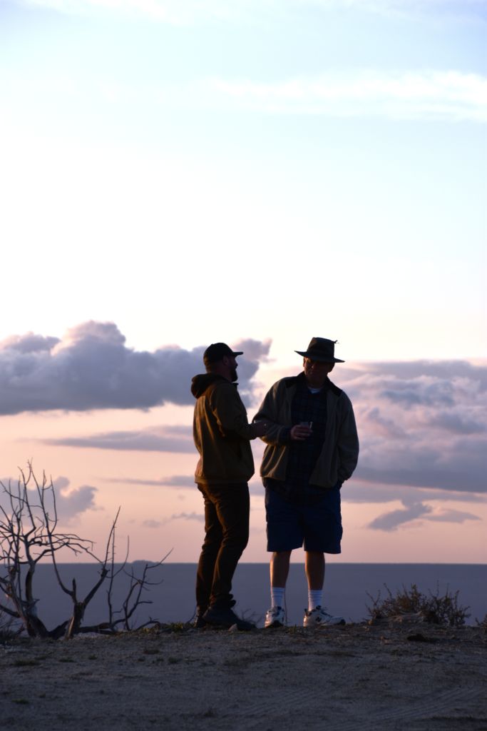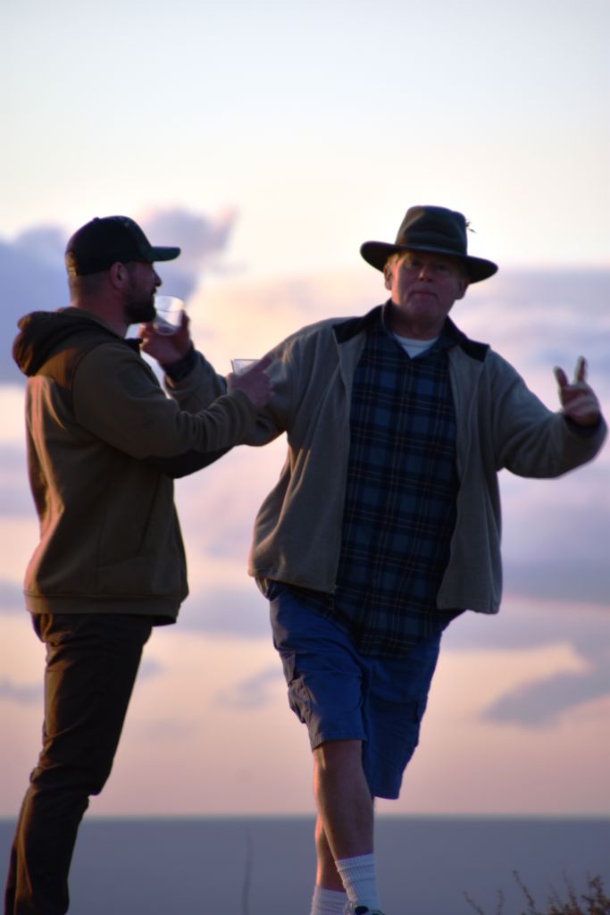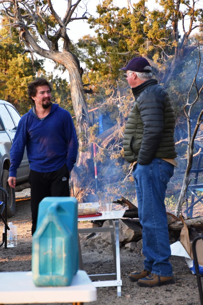 We joyously went back to retrieve Bill, who certainly is too kind and strong to have let his viewpoints be known to Mr. “MAGA”.  We were unpacking and celebrating our find in no time.  The breeze was up and it was chilly, but we had plenty of daylight to set up, find tent spots, and get situated for the night.  A fire lit, Billy at the helm of some outrageous beef stroganoff, a celebratory beverage, peace, calm, privacy, and the night was absolutely complete.  The night was cold, but I was prepared.  I had just come back from our property where my brother Mike and I had camped in the low 20’s.  Bob and Steve joined us for the second night, but they didn’t warm it up much.  Perhaps I was overconfident since these temps were only getting into the high 30’s.