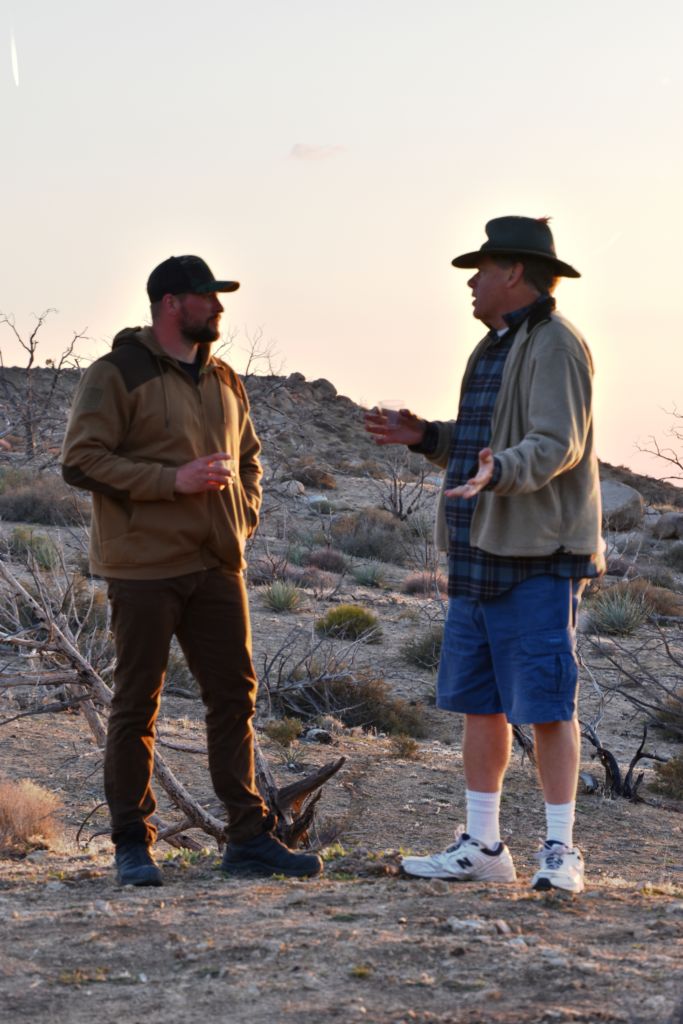 We heard some great tunes on the way back and actually passed one car; our only for the day.  With Ivanpah Road closed for the foreseeable future, this far NE corner of the park will become even more remote.  We drove up to the rock cabin at Rock Spring so the boys could see.  It was great to have all the memories come back as we faced into the breeze and faced back towards where we had left the boys.  It was time the make the last run down Cedar Canyon, Black Canyon, and into camp, where cocktails, fire, and dinner awaited.