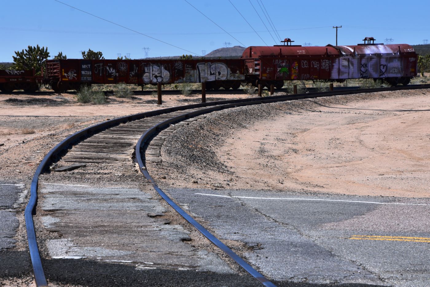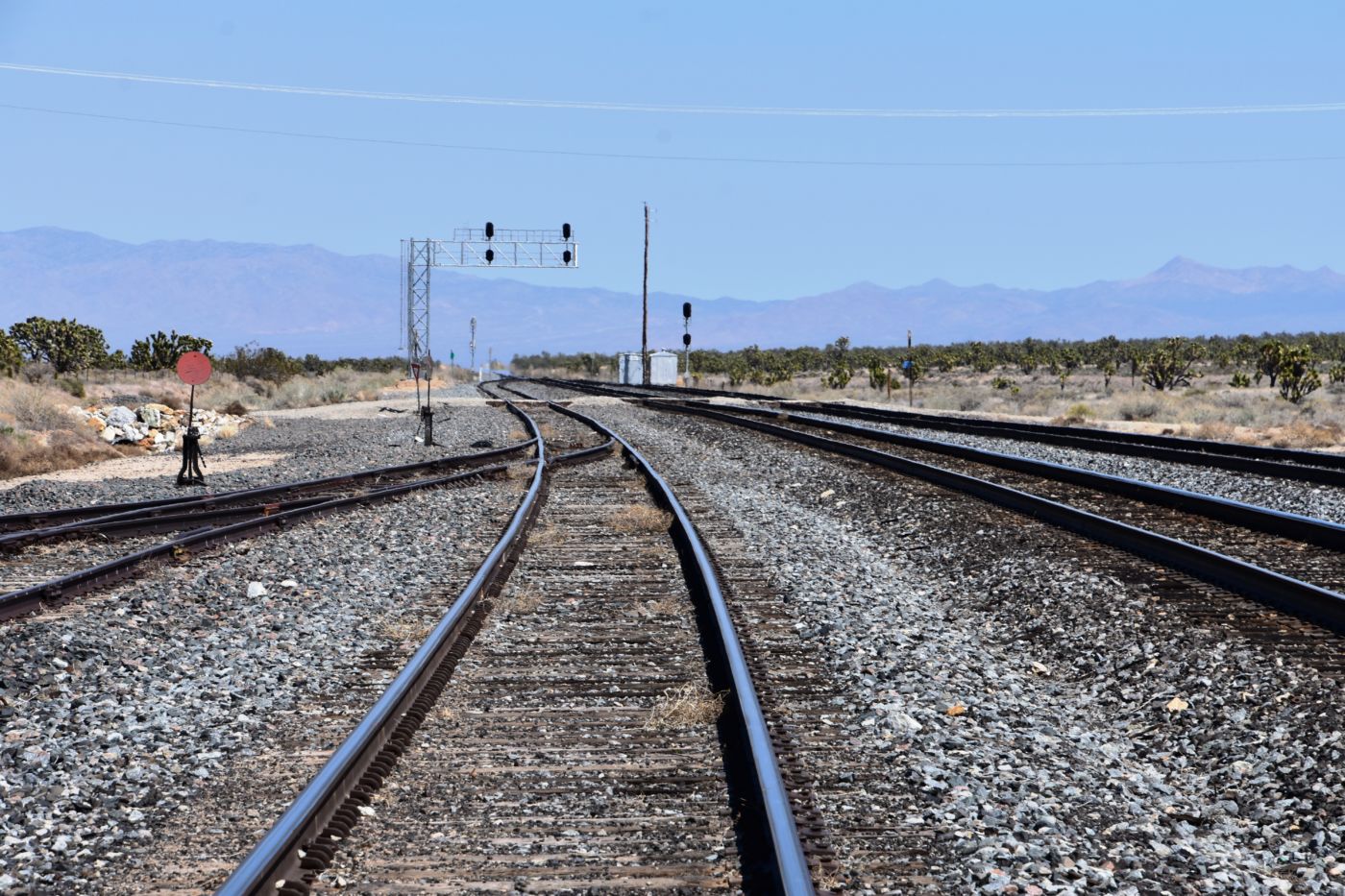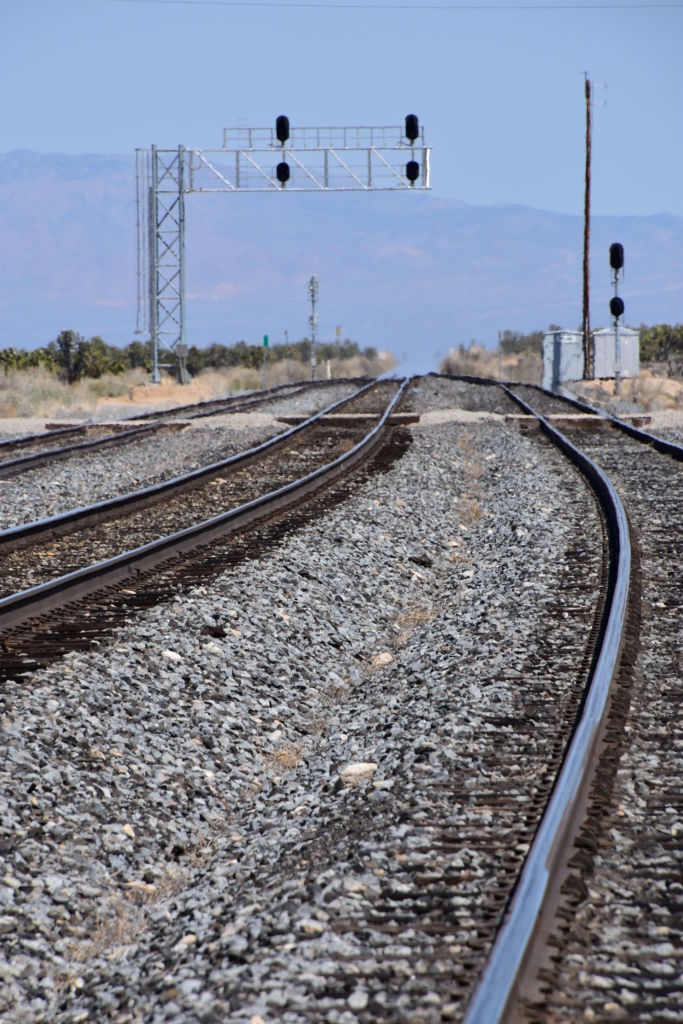 As David and Jordan chatted, Bill surprised me with quite a sizeable flat, triangular, piece of this white chalky rock I had gathered similar pieces of in the ravine.  It was a sweet piece and I was grateful to have it.  We said our goodbyes and headed up towards Cima.  I was pulling over to check connectivity to call Kristen, when I noticed all the rail lines and a few interesting cars I had noticed on the way in.  I got out to scout and gather a few train souvenirs, when David pulled up to say thank you and goodbye.  It was a great trip with him.  Just a few moments after David had left, Jordan pulled up and I showed him my booty.  We ended up talking there for an hour or so and it was hard to leave him.  We had a really good time.