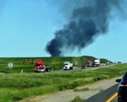 It had only been about an hour since I left camp so I called Kristen to let her know I was only about 2 hours away. That was, until I saw the massive plume of black smoke. Traffic came to a crawl and then full stop. I called Kristen back and she found a report about a big rig on fire, closing Northbound 5. This was the 5th consecutive big rig accident I had seen on these trips. I cannot imagine it was coincidence or an oddity. I wonder how many big rig accidents there are on our roads. Doesn’t putting way more containers on trains make more sense? In any event, the old Chinese dude from the car behind me came up to me just as I was arranging the doors to take a leak. With so many people out of their vehicles, it was obvious the mess would take a while. He and I chatted a bit and I was convinced to follow the lead of a few folks and cross the median to head South and find an alternative route.