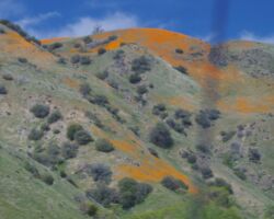 Nonetheless, the extra mileage within radio signals allowed me to hear the end of the story and to see some new country. The unpaved Panoche Road brought me into some spectacular wildflower blooms, and a hill and dale I had never seen before. It cost me time, but it was worth the experience. By then, I had turned to my I-tunes and was listening to new music that I was also enjoying very much. The beverages helped, the grader operator that assured me I could get through, despite the BLM signs to the contrary was a positive, and the vibes were entirely supportive. I eventually picked up pavement, familiar landmarks, and the long end of Little Panoche Road. The temptation to stop at the bar for a beverage was strong, but I needed to connect with the boys.